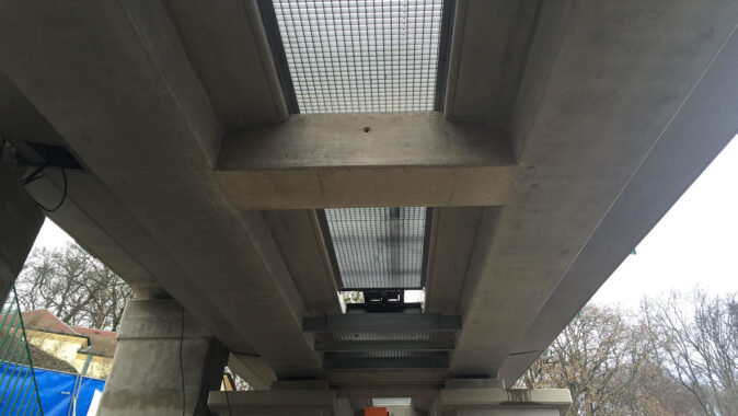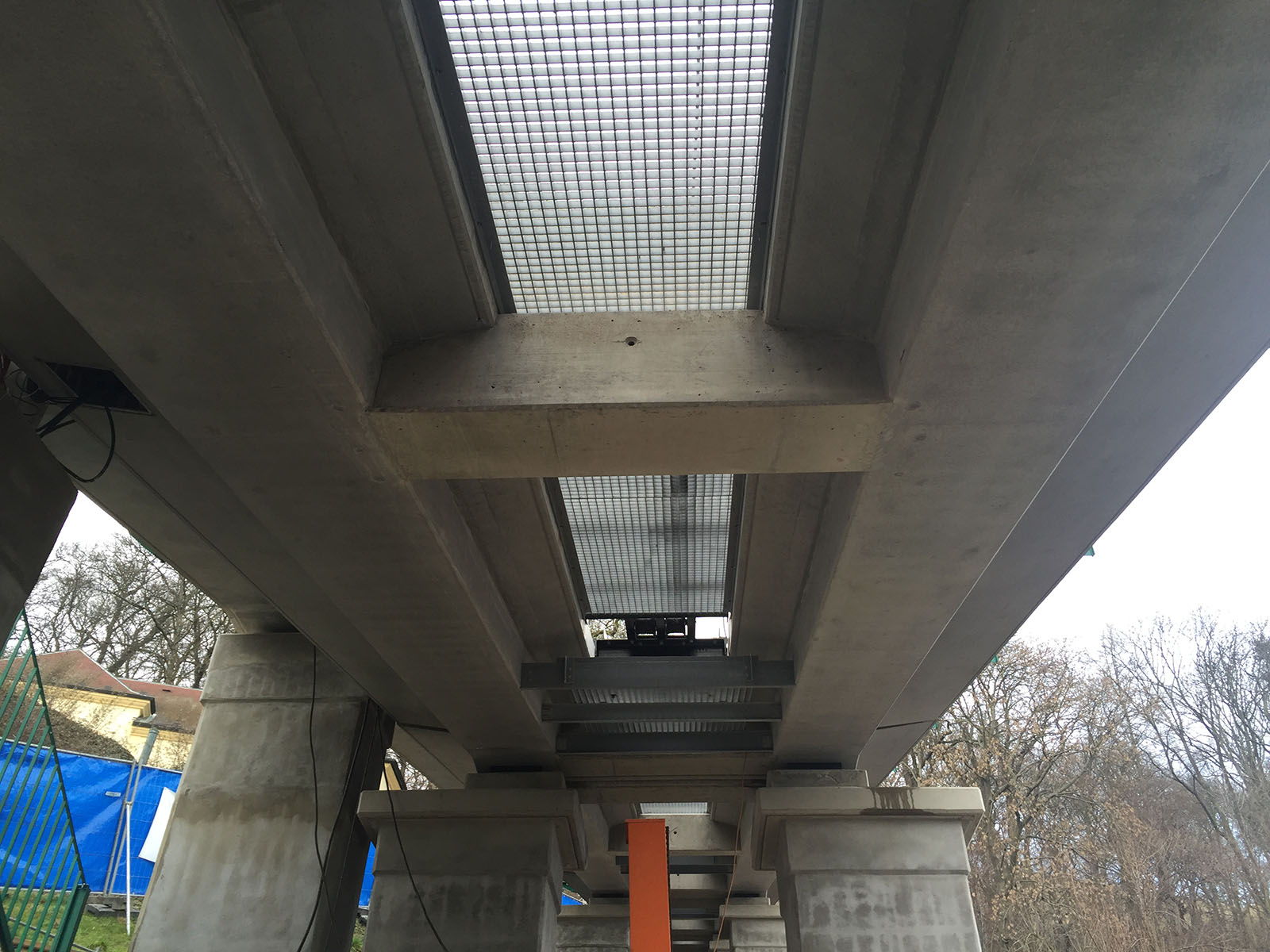Původní most začal být kvůli špatnému podloží nestabilní, bylo tedy nutné postavit v délce 100 m nový most. Součástí nového mostu je i kompozitní schodiště a 70 m úsek zrcadla mostu je zakryt kompozitními rošty. Kompozitní materiály MEA byly zvoleny investorem kvůli své nízké váze a dlouhé životnosti. Barva roštů je šedá, takže nenarušuje ucelený vzhled dráhy. Kompozitní materiály však mohou být v jakékoliv barvě.