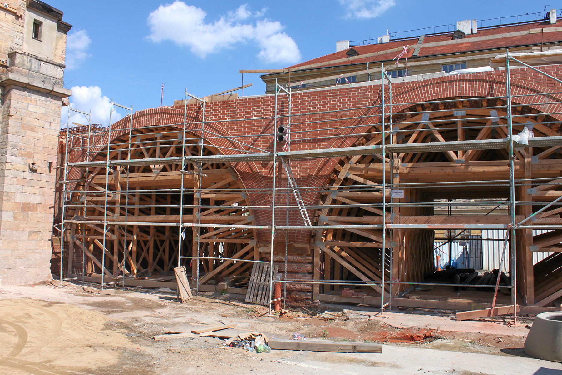 oblouků je kamenná a část z cihel. Právě na opravy cihlových oblouků naše