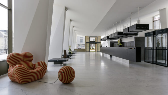 Na základě upozornění ateliéru Architekti Headhand jsme v redakčním dodatku opravili autorství projektu. Správně jsou autory projektu rekonstrukce celého vstupního patra, od studie až po prováděcí projekt, kancelář Architekti Headhand s.r.o. ve spolupráci s kanceláří Šrámková architekti s.r.o. a s projekční kanceláří Delta Plan spol. s r. o. Pan architekt Halperin, na požádání klienta autorsky přepracoval barový pult a část podhledu restaurace.