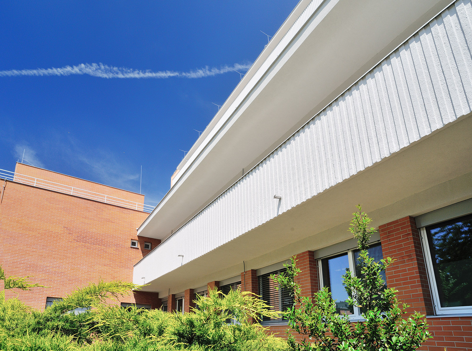 cihelných pásků a s dalšími barevnými plochami. Pro povrchovou úpravu