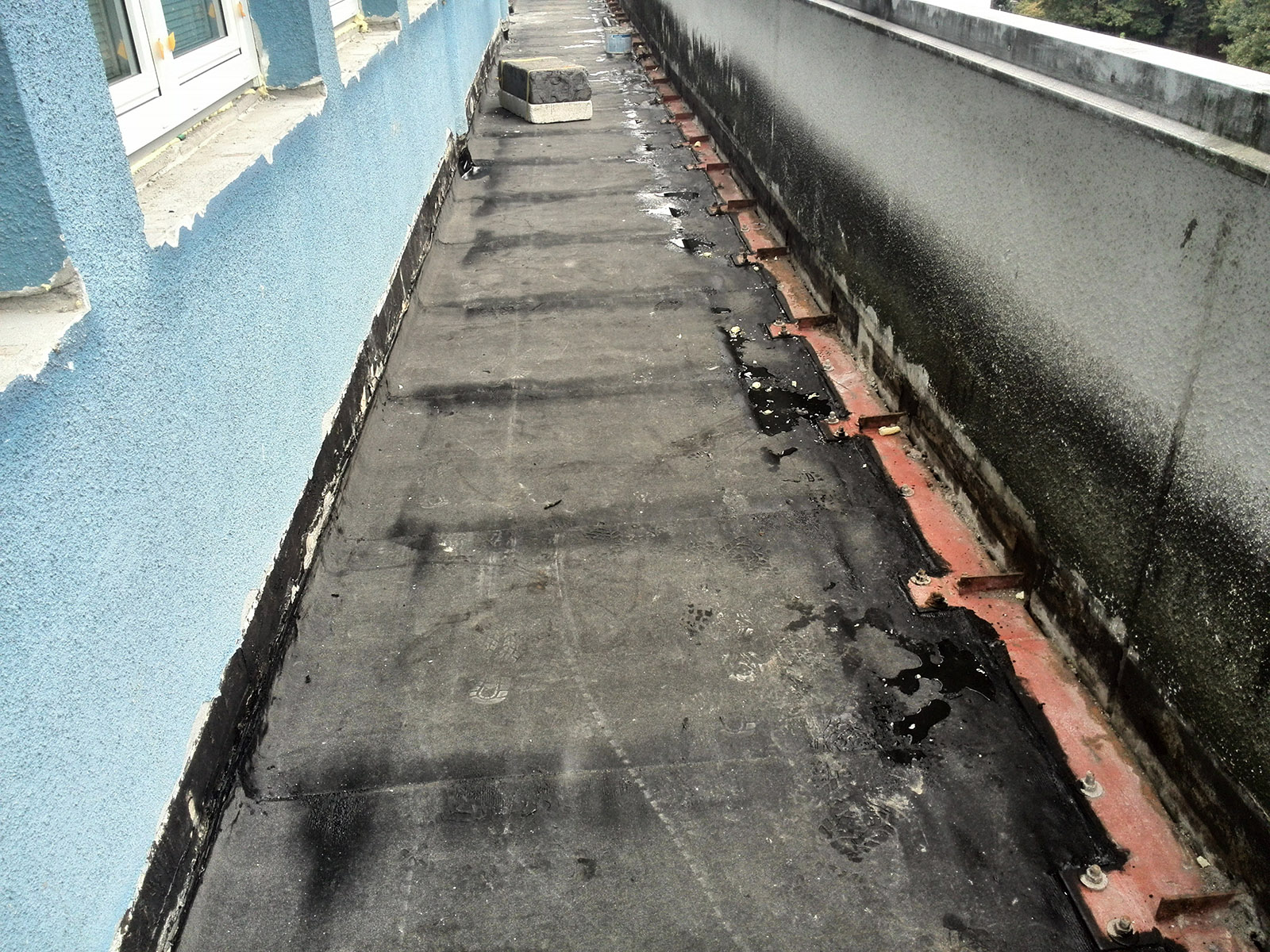 byla pasivována částečně odhalená ocelová výztuž výrobkem Cemix Antikorozní ochrana (141) a následně byl reprofilován povrch