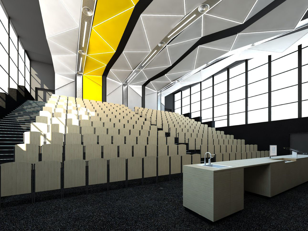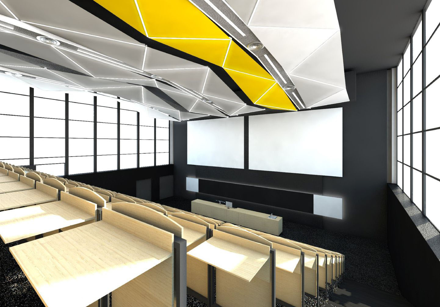 poslucháren budou instalovány revizní pojezdové lávky. „Dále budou posluchárny vybaveny novými sedačkami s možností napájení