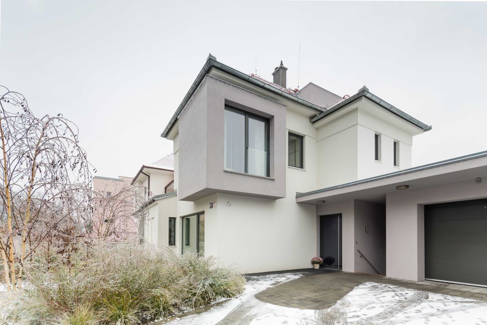 vsazené do střešní roviny. Ryze soudobá je navazující přístavba garáže se
