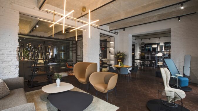 Zpřístupnit showroom z ulice a využít prostor s vysokými okny pro expozici designu, která bude viditelná pro všechny kolemjdoucí – takové byly hlavní záměry rekonstrukce a proměny v holešovickém showroomu Konsepti.
