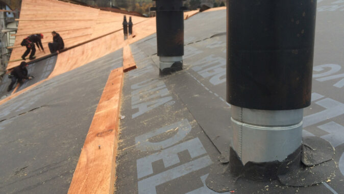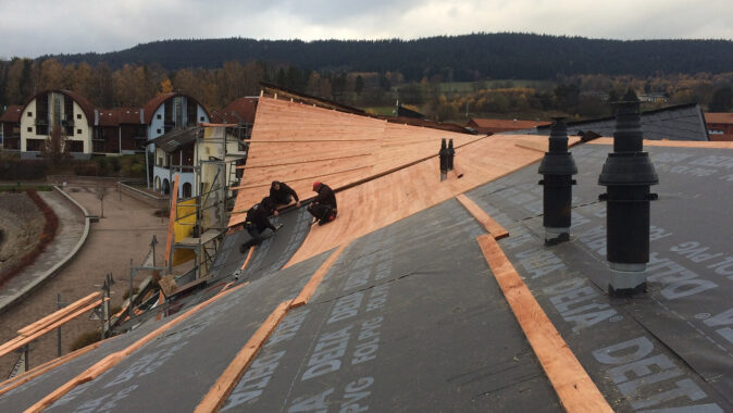 navrhování a provádění střech položen na dřevěném bednění. Spoje