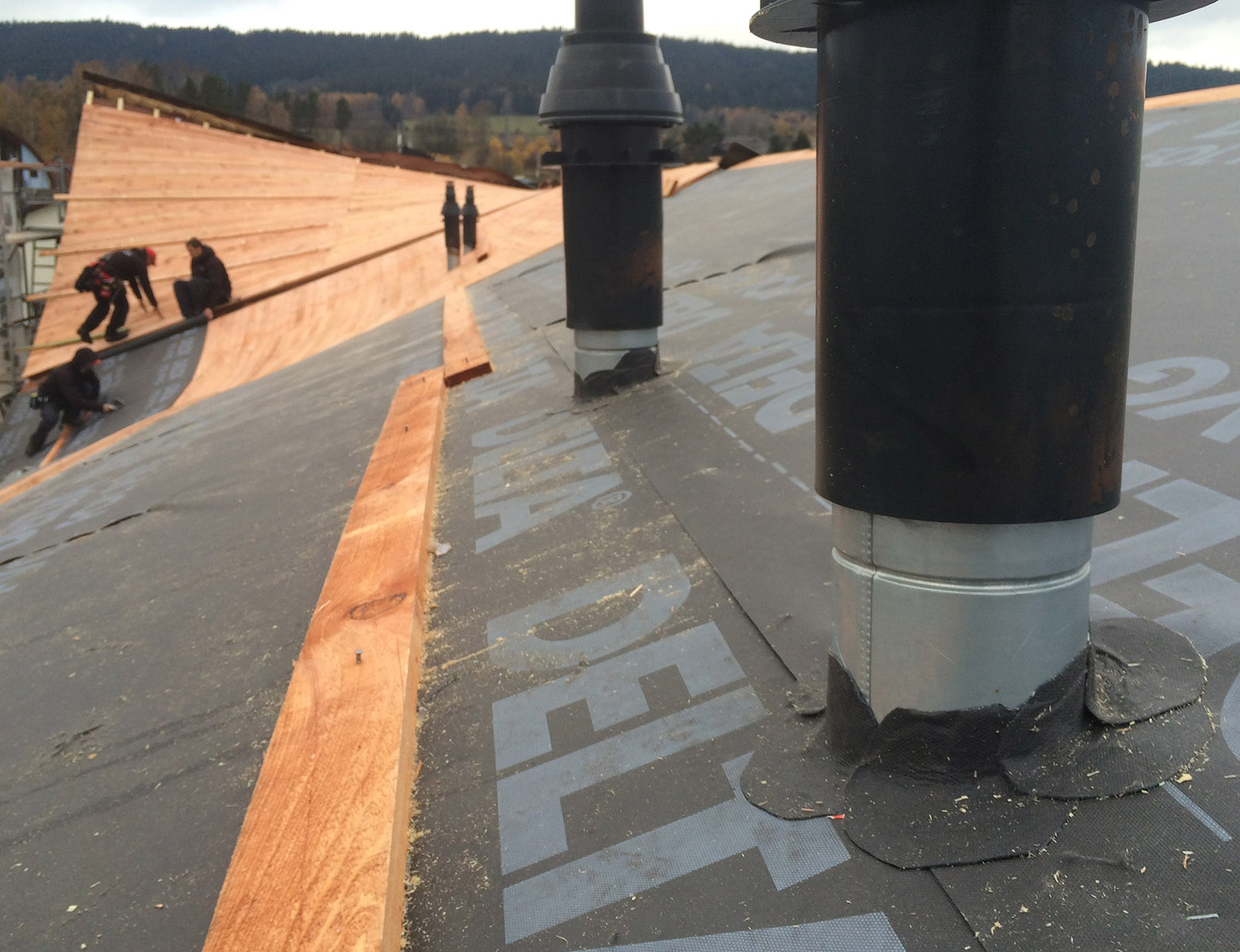 navrhování a provádění střech položen na dřevěném bednění. Spoje
