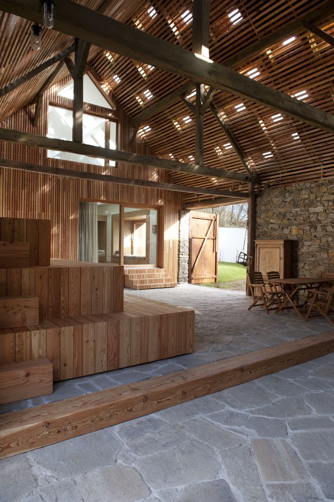 Ústředním zadáním bylo vytvoření dvou soukromějších a zároveň vzájemně propojitelných obytných jednotek využívaných více generacemi. Samostatnost je vědomě porušena ponecháním jediné kuchyně. Obyvatelé se tak stále potkávají v původní světnici u kamen. Prarodiče využívají spodní úroveň chalupy, rodiče s dítětem podkroví a vestavbu provedenou do křížení chalupy a stodoly. V křížení jsou v přízemí umístěny vstupní hala se schodištěm, šatna, technická místnost, koupelna a dětský pokoj orientovaný prosklením do stodoly a východní zahrady.