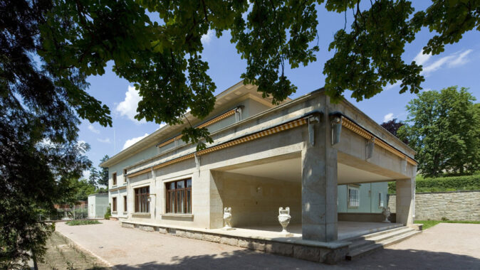 Rodinná vila textilního továrníka Alfreda Stiassni podle návrhu Ernsta Wiesnera působí na venek záměrně prostě. Wiesner objekt usadil hluboko do svahu a svažitost pozemku využil ve prospěch vily, z mnoha míst byl nerušený výhled do pisáreckého údolí.