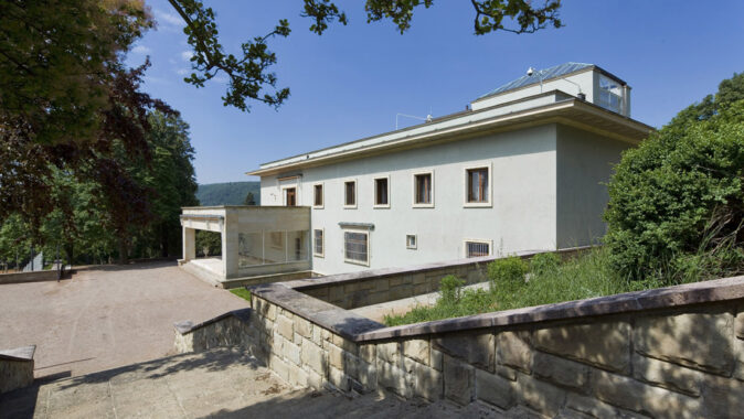 Rodinná vila textilního továrníka Alfreda Stiassni podle návrhu Ernsta Wiesnera působí na venek záměrně prostě. Wiesner objekt usadil hluboko do svahu a svažitost pozemku využil ve prospěch vily, z mnoha míst byl nerušený výhled do pisáreckého údolí.