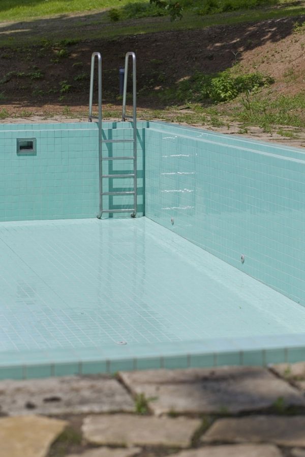 Bazén vily byl a je obložen světle zelenými obklady RAKO