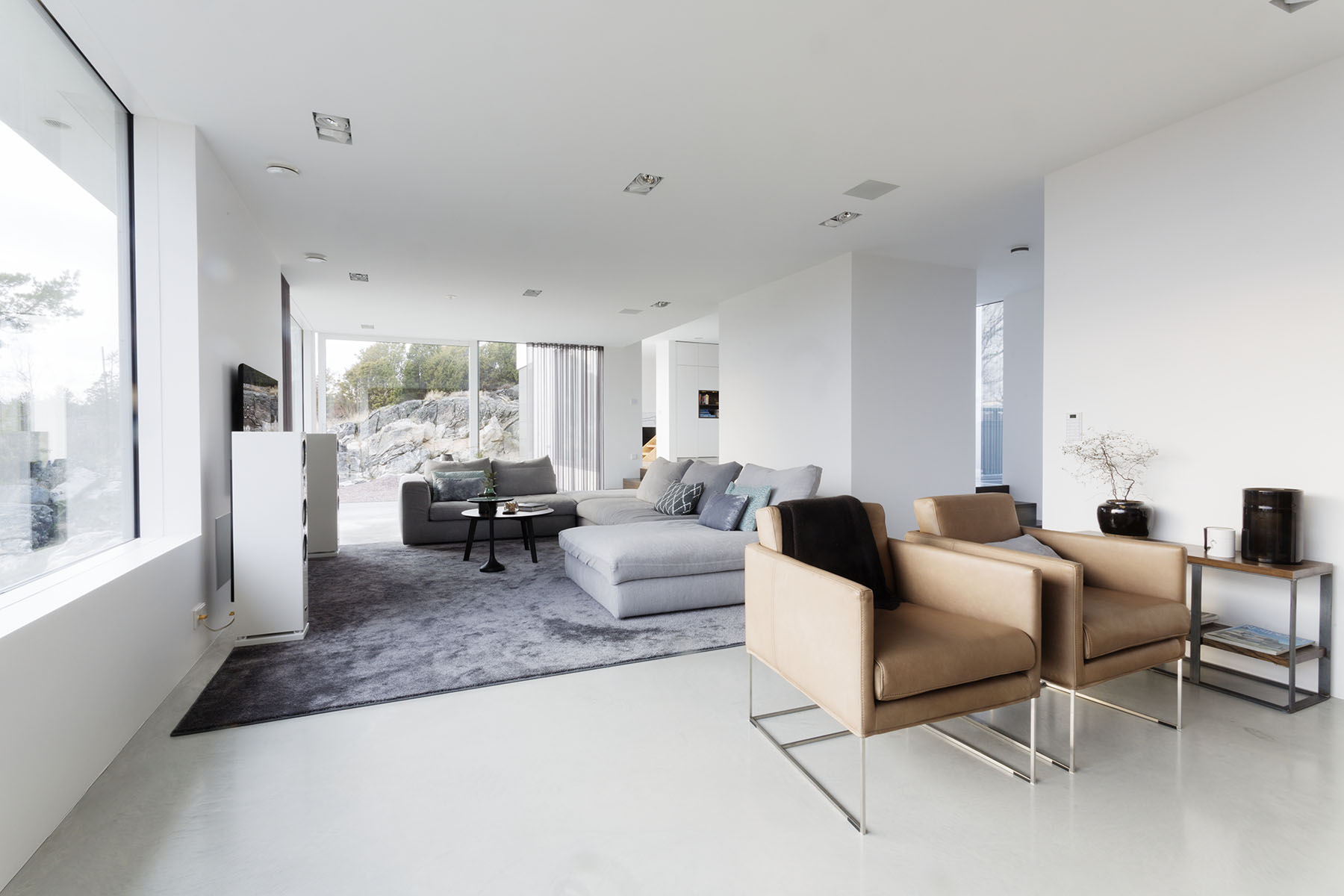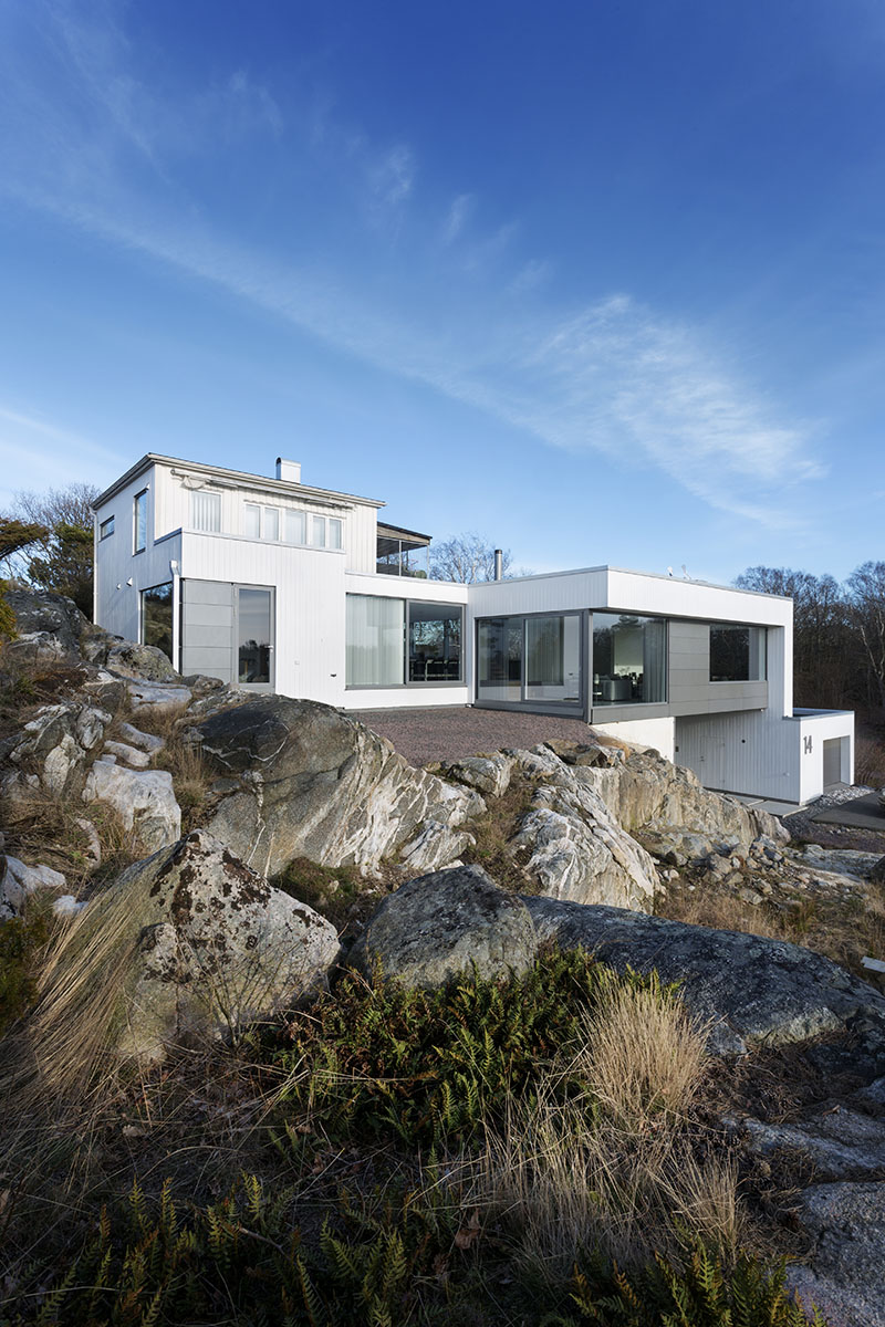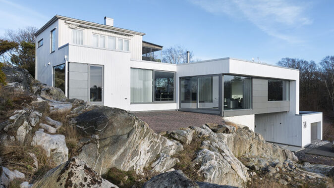 K radikální změně domu, který dispozičně zcela nevyhovoval a i stylově dávno vyšel z módy, se rozhodli dva mladí lidé ve švédském městečku Särö. A do rekonstrukce se dali ve stylu Bauhaus, tedy jedné z nejvýznamnějších avantgardních škol umění, designu a architektury. Aby vpustili do domu maximum denního světla a mohli si užít nerušené výhledy na okolní krajinu, aniž by slevili na energetické efektivitě objektu, realizovali prosklenou fasádu z tepelněizolačního systému Schüco FW 50+.HI a z posuvných hliníkových systémů Schüco ASS 50.
