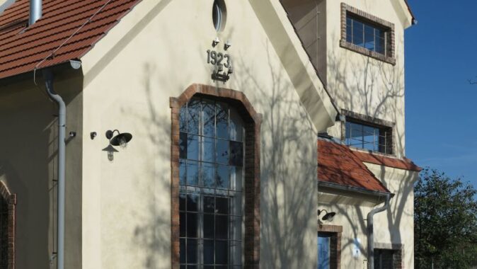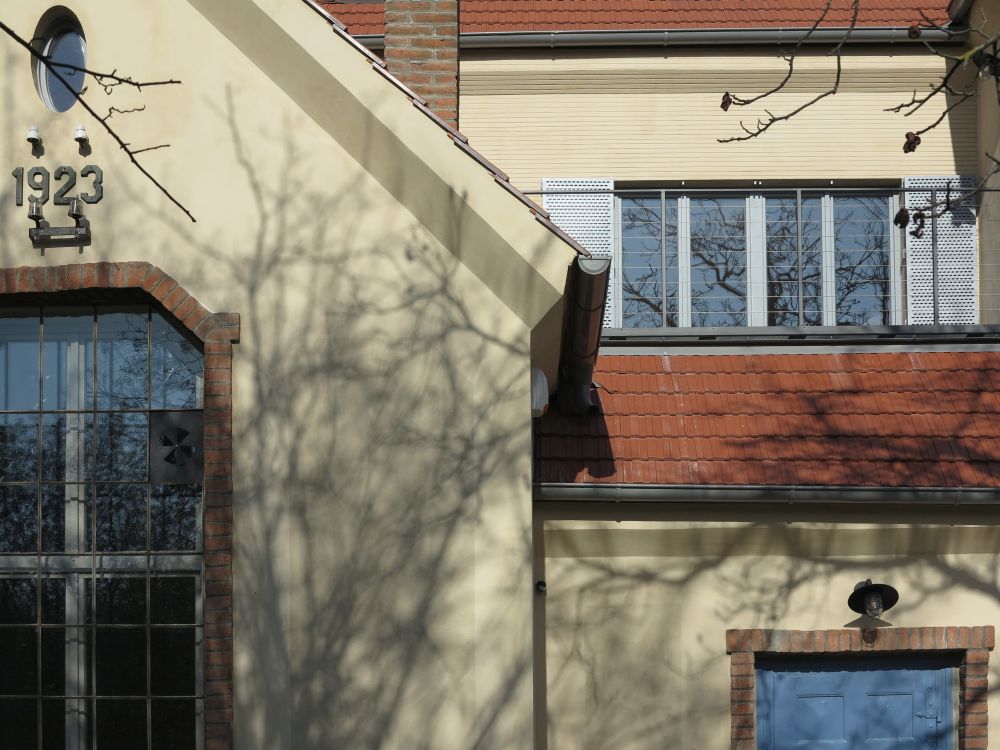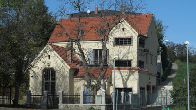 Nejstarší část objektu, která sloužila jako vodárna s čerpadly, byla postavena roku 1923. Stavba se z velké části zachovala – architektonické články, cihlové rámování oken, ocelová členěná okna, vnitřní okenice, kamenný sokl, členění fasád a další prvky, které domu dodávají osobitý styl. Dnešní podoba odpovídá plánu z roku 1935, který dokumentuje přístavbu věžové trafostanice. Rokem 1939 je datována dostavba od architekta Jaroslava Raimana.