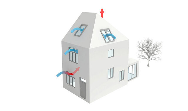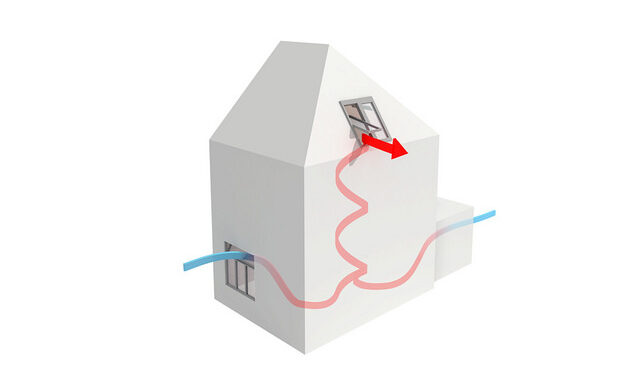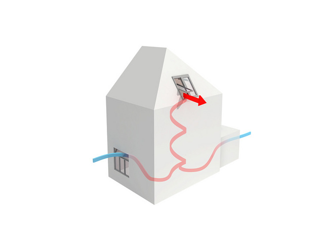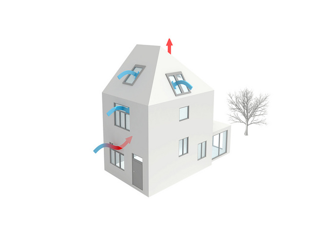 místností domu. Komínový efekt navíc pomáhá odvádět vlhký odpadní vzduch