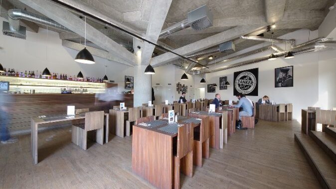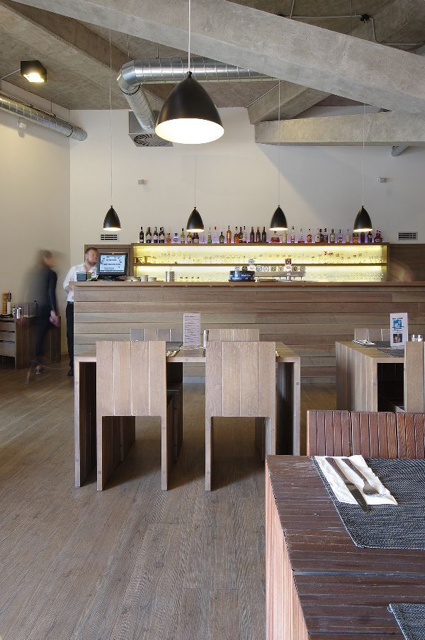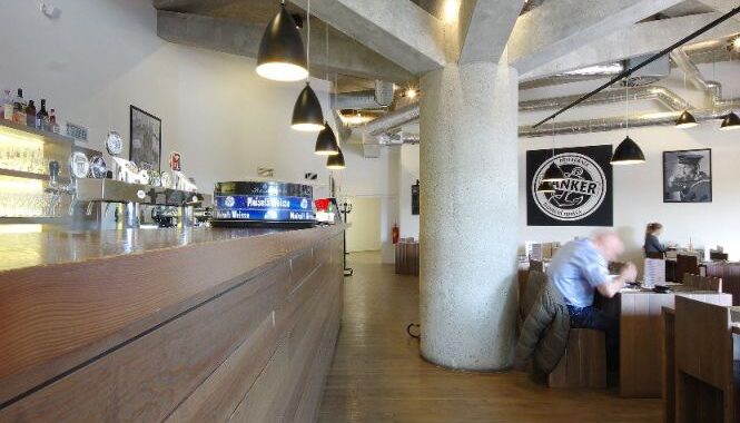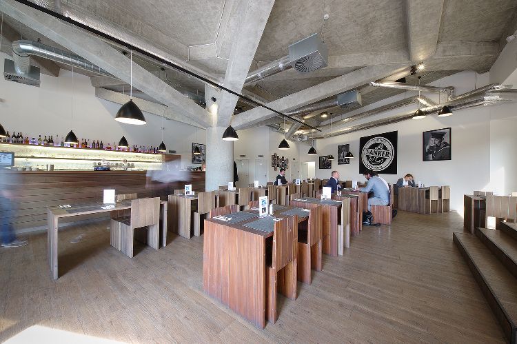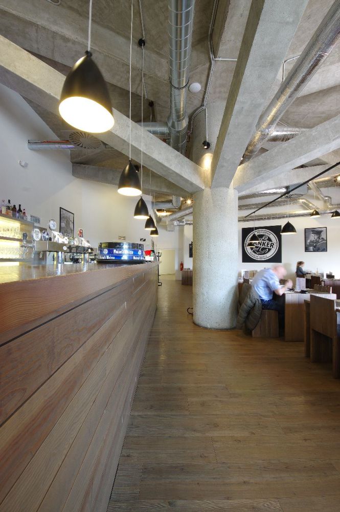 Kombinace syrových betonových konstrukcí a tmavého dřeva tvoří charisma restaurace, která je specializována na výjimečné typy piva. Bar, pergoly se zatahovacími plachtami, květinové zábradlí a hmatatelná blízkost věží kostela sv. Jakuba…