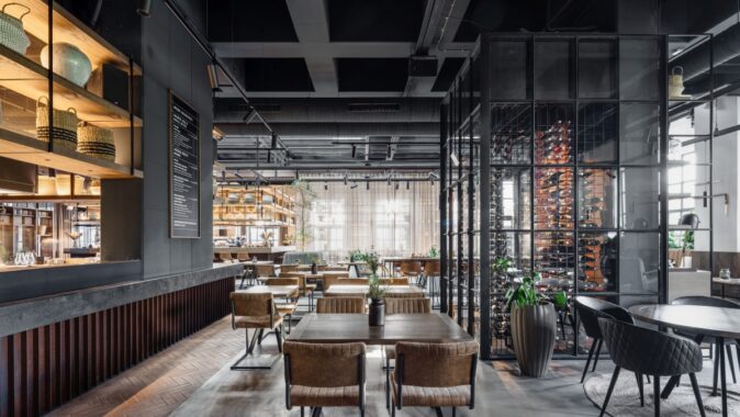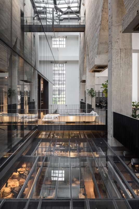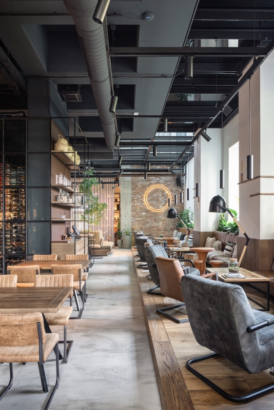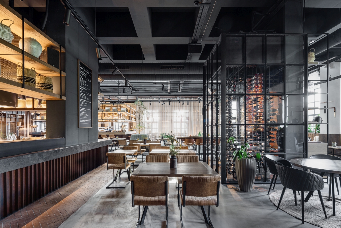 spomínaná reštaurácia WERK využíva značnú časť priestoru prízemia, presahuje do