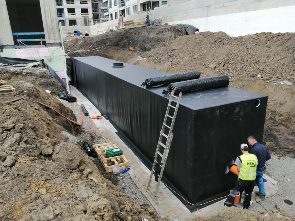 V obytném souboru Green Port Praha byly projekčním týmem MEA navrženy retenční nádrže v celkovém objemu cca 120 m3. Vzhledem ke stíženým prostorovým podmínkám je tvar nádrží, seskládaných z pevných bloků, rozměrově přizpůsobený okolním objektům. Galerie je obalena pevnou geotextilií, která prosákne vodou, ale zadrží hrubé nečistoty. Revize probíhá kamerovým systémem kontrolním tunelem, takže je možné určit případné potřeby čištění.