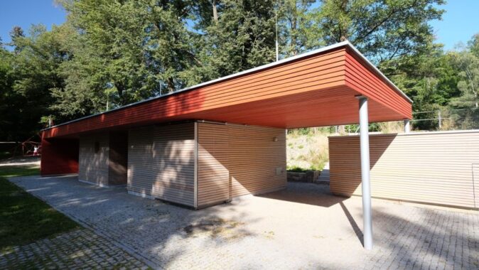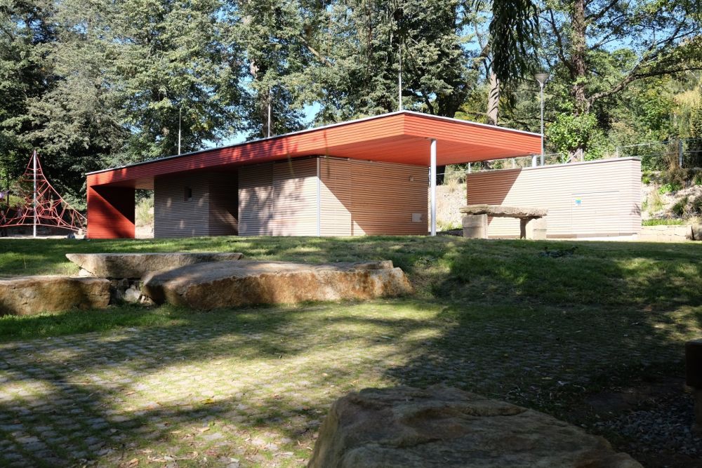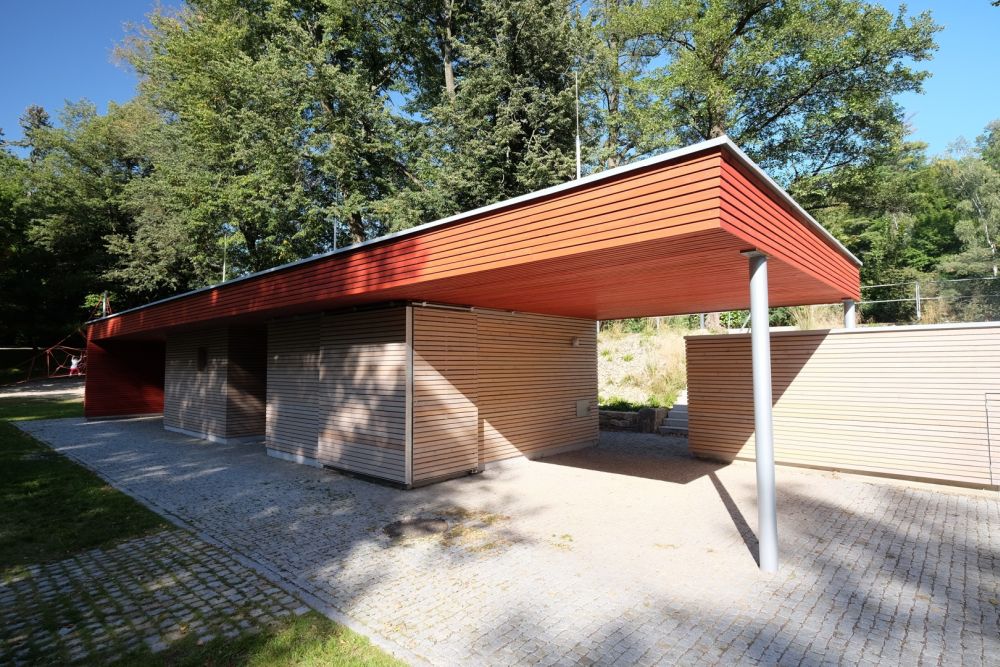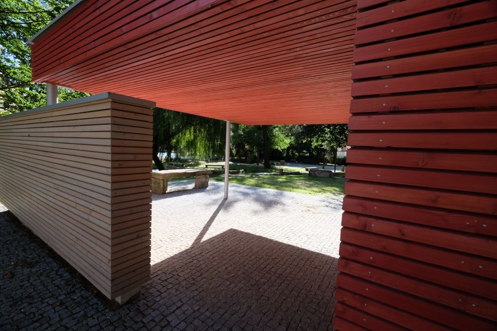 Architektonické řešení vychází z celkové koncepce řešení parku Budoucnost. První etapa v sobě zahrnuje centrální objekt – kavárnu se sociálním zázemím i zázemím pro pořádání kulturně společenských akcí. Součástí území je dětské hřiště, amfiteátr, vodní biotop – rybník Očko, pobytové trávníky, vzrostlé stromy a výsadby trvalek, travin a popínavých rostlin. Řešení bylo doplněno lavičkami a veřejným osvětlením. Vše je řešeno soudobou formou podřízenou přírodnímu a historickému kontextu místa.