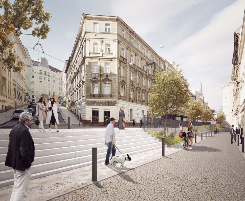proto bude nahrazena soustavou zelených ostrůvků a dalších schodišť – kromě