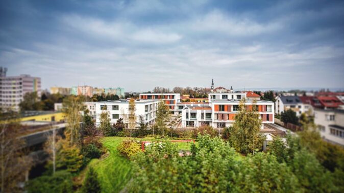 do prostředí města a pocit rodinného bydlení, které soubor bytových domů svým