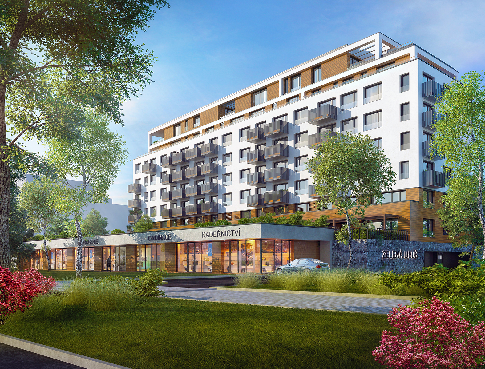 Osmipodlažní bytový dům Zelená Libuš nabídne 66 zdravých bytů v dispozicích 1+kk až 5+kk. Součástí projektu je 600 m2 komerčních ploch v parteru