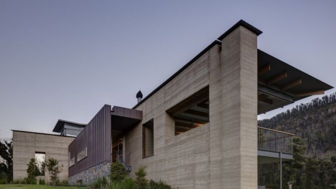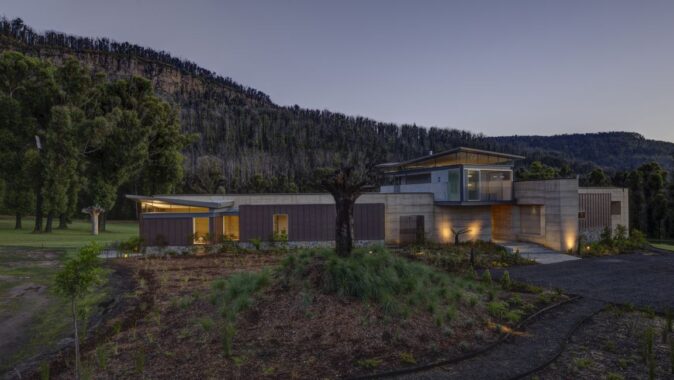 Když na přelomu let 2019 a 2020 zasáhly ničivé požáry údolí Kangaroo Valley nedaleko městečka Budgong v Novém Jižním Walesu, oheň pohltil nejen rozsáhlou plochu australské buše, ale také cihlový dům ze 70. let. Hojně využívané víkendové obydlí se rázem proměnilo v neobyvatelnou hromadu sutě. Přestože následky požáru byly devastující a zbytek stavby musel být stržen, pro majitele se tato přírodní katastrofa stala nečekaným impulsem – postavili se výzvě a na místě původního objektu se rozhodli vybudovat zcela nový dům, na míru svým představám. Na rozlehlém pozemku, ohraničeném horou Mount Scanzi a národním parkem Morton, přibližně 125 kilometrů od Sydney, tak byly brzy zahájeny plány na budoucí mistrovské architektonické dílo.