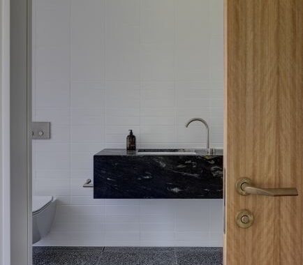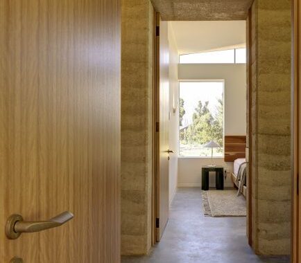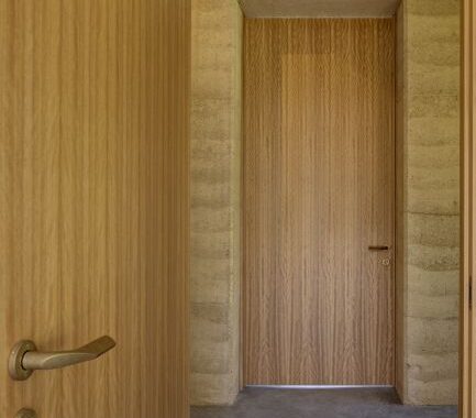 V témže duchu vybíral tým architektů i interiérové vybavení. Kromě kvalitního dřevěného nábytku lokálně vyrobeného na míru muselo požadavek na udržitelnost splňovat například také dveřní kování. Do této stavby architekti zvolili kliky SOGUT z masivní mosazi od českého výrobce M&T. „V projektu, jako je tento, ve kterém je cíleno na smyslový zážitek, je důležitá interakce i s dveřním kováním. Nejenže by kliky měly vzhledově odpovídat materiálové paletě celé stavby, ale důležité je jejich kvalitní konstrukční zpracování, aby se ovládaly bez jakékoli námahy. Klika SOGUT s přirozenou mosaznou patinou splňuje obojí,“ říká za celý tým architekt Dominic Bennett z architektonického studia Bennett Murada Architects.