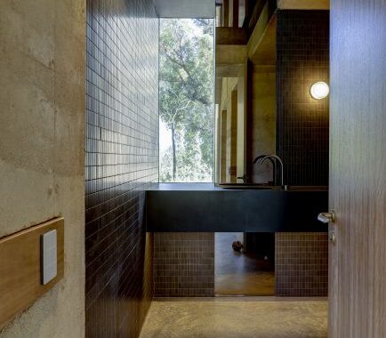 Majitelé ke spolupráci oslovili architekta Dominica Bennetta a jeho tým z architektonického studia Bennett Murada Architect. Při výstavbě trojpodlažního domu byl důraz kladen především na maximální využití recyklovaných a udržitelných materiálů. Součástí nově psaného příběhu tohoto místa se tak stala i nedávná zkáza – do stěn stavby byly použity staré kovové prvky a rozbité cihly z původního domu, ohořelé stromy z okolí byly opracovány a použity coby dřevěné trámy na terasu či pro stavbu příjezdové brány. Snaha o udržitelnost se v tomto projektu projevuje i ve výběru dalších stavebních materiálů. Mezi ty například patří dusaná zemina upotřebená pro výstavbu metr silných zdí ukotvujících dům k pozemku, kamenů, skla či betonu. Paleta použitých materiálů je záměrně volena tak, aby byla příjemná na dotek a umocňovala zážitky z australské buše. Pro běžný chod domu je pak v maximální míře využívána solární energie a dešťová voda.