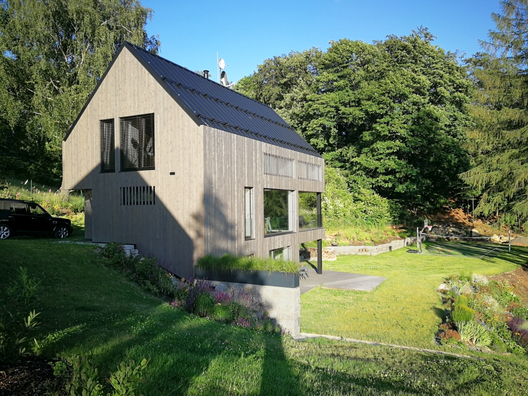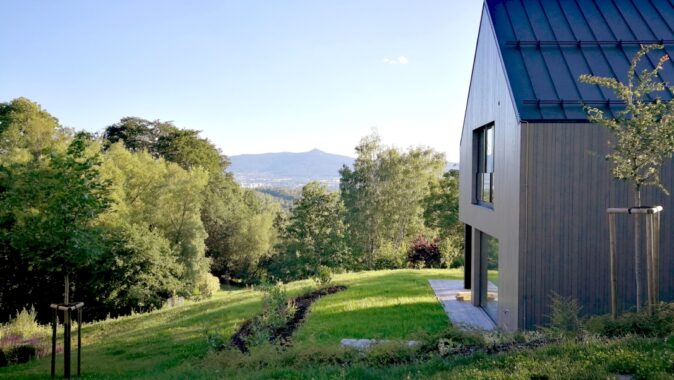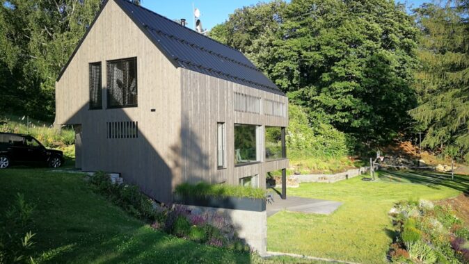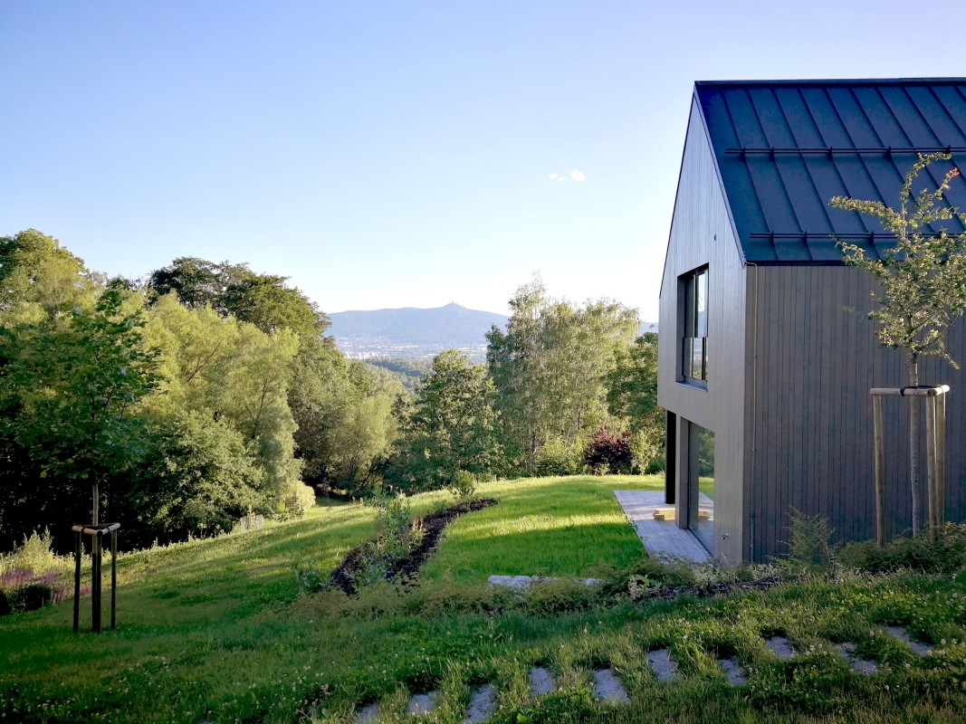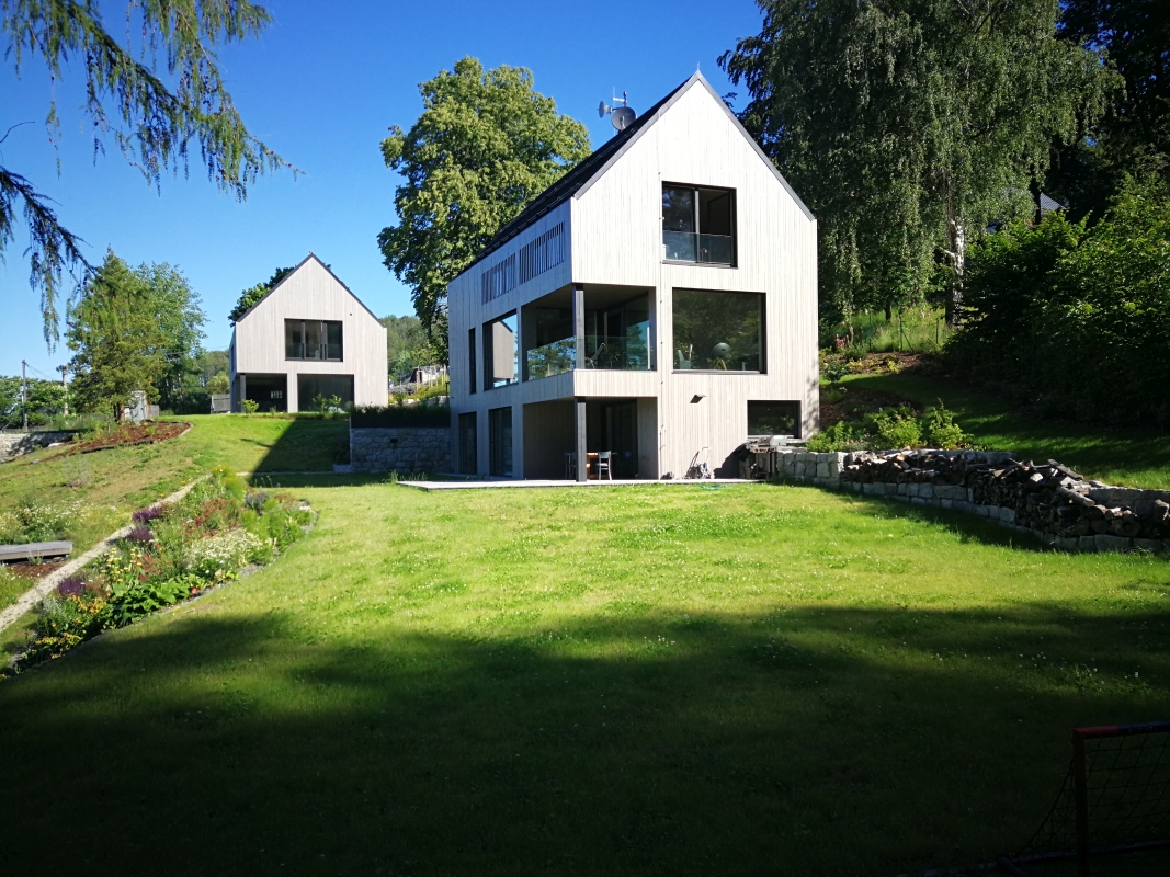 Nedaleko Liberce, v krásné přírodě s nádhernými výhledy na okolní kopce, byly navrženy dva rodinné domy, dřevostavby.