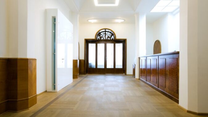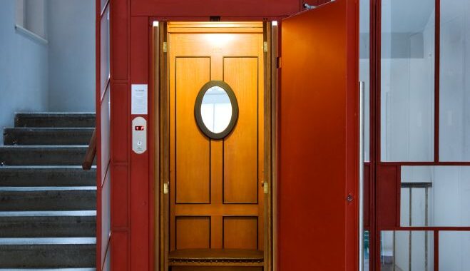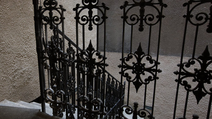 krásný výtah z roku 1928. Jeho dráha byla prodloužena do podkroví, kde vznikly