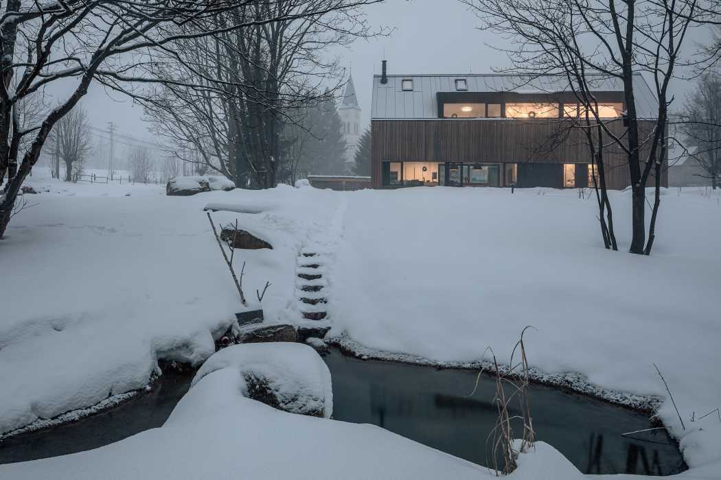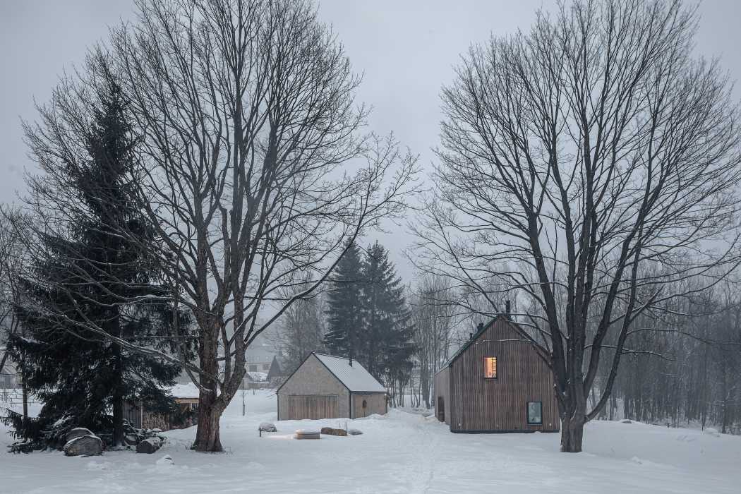 Jeden obytný dům a stavení připomínající stodolu. Uprostřed Jizerských hor společně vytvářejí ideální domov pro víkendový útěk z města i ke stálému obývání. Celý koncept je zdárným příkladem toho, že i moderní stavby pojaté s pokorou dokážou harmonicky splynout s tradičním horským prostředím a nenarušovat ráz okolní krajiny.