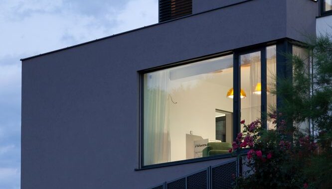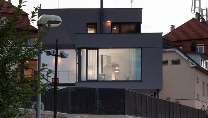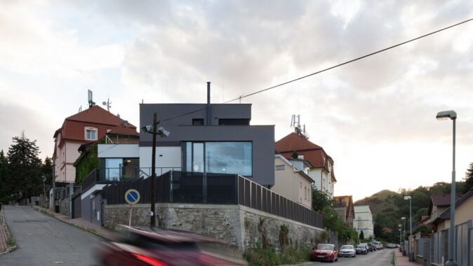 Dům usazený ve svahu v pražské Chuchli. Svým způsobem se vymezuje okolní zástavbě a zároveň se orientuje na výhledy. Jednoduchá krychle, nacházející se na půdorysu původní stavby, která je doplněna o předsazené kvádry.