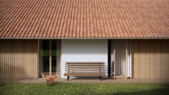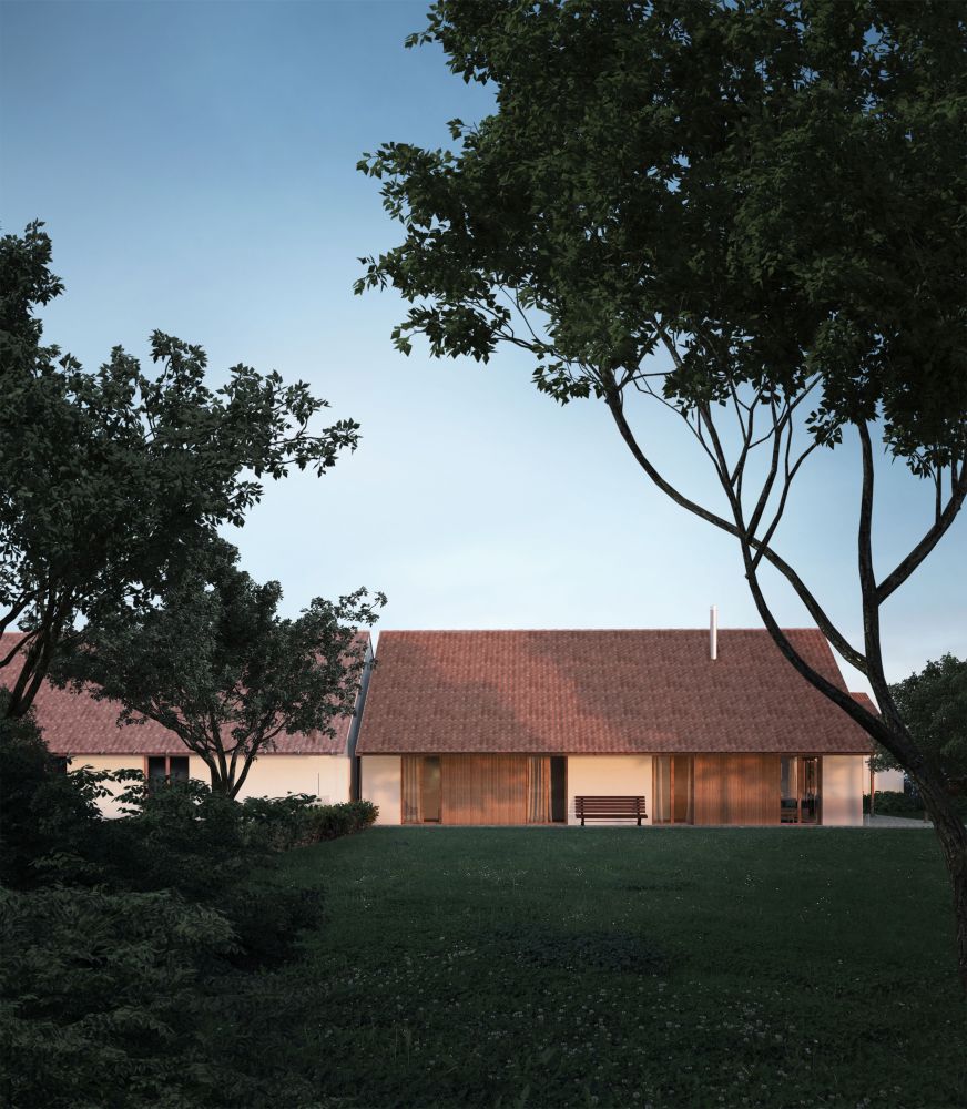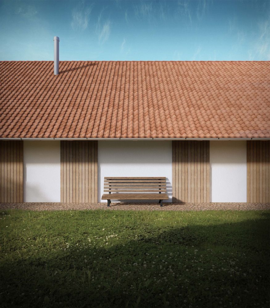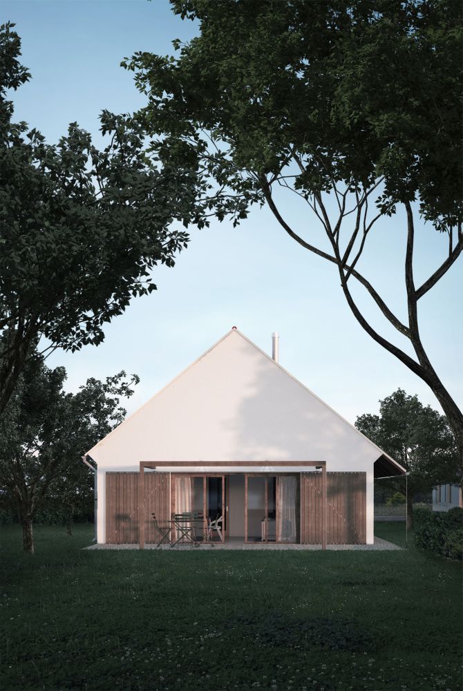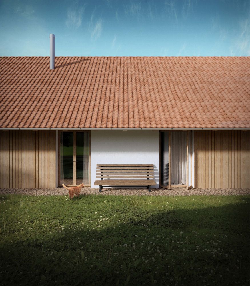 Naším společným cílem bylo navrhnout skromný dům pro ženu ve zralém věku a příležitostné návštěvy rodiny, především vnoučat. Vyznění stavby vychází z tradičních českých a moravských obydlí. Krytým zahloubeným vstupem ve štítu se vstupuje do příjemného, ale praktického prostoru s dřevěnou podlahou i stropem. Pokoje jsou řešeny jednoduše, ale pohodlně. Velkorysý prostor obýváku a kuchyně je otevřený do krovu a poskytuje neočekávaný zážitek. Všechny pokoje jsou propojeny se zahradou skrze francouzská okna, která mohou být v létě zastíněna posuvnými okenicemi a pergolou. Zahrada poskytuje dostatek soukromí, otevřenost domu tak působí příjemně.