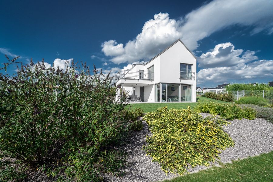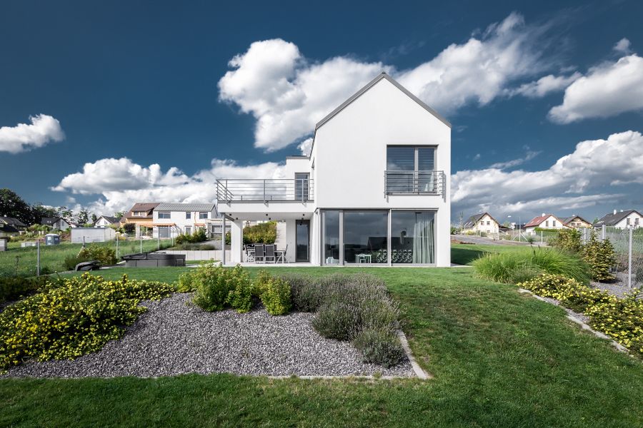 Mladou čtvrť Červený kopec nad severočeským Trutnovem charakterizuje rozmanitá zástavba rodinných domů. Autory několika z nich jsou Martina a Michal Rosovi. Před čtyřmi lety zde vyrostl další z rodinných domů, který ve svém architektonickém výrazu nezapře své tvůrce. Architekturu domu pro mladou rodinu charakterizuje hmotově jednoduché řešení a nadčasový architektonický výraz pracující s hladkými omítanými plochami v kombinaci s velkoplošným zasklením bez dalšího členění. Velkorysé hliníkové posuvné a okenní systémy Schüco propojují interiér s navazující zahradou a obyvatelům domu zajišťují ničím nerušené výhledy do okolní krajiny.