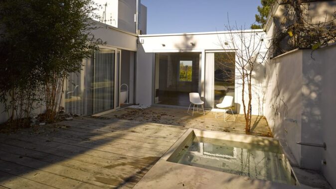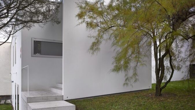 Dům je součástí souboru atriových domů na Zeleném Pruhu
