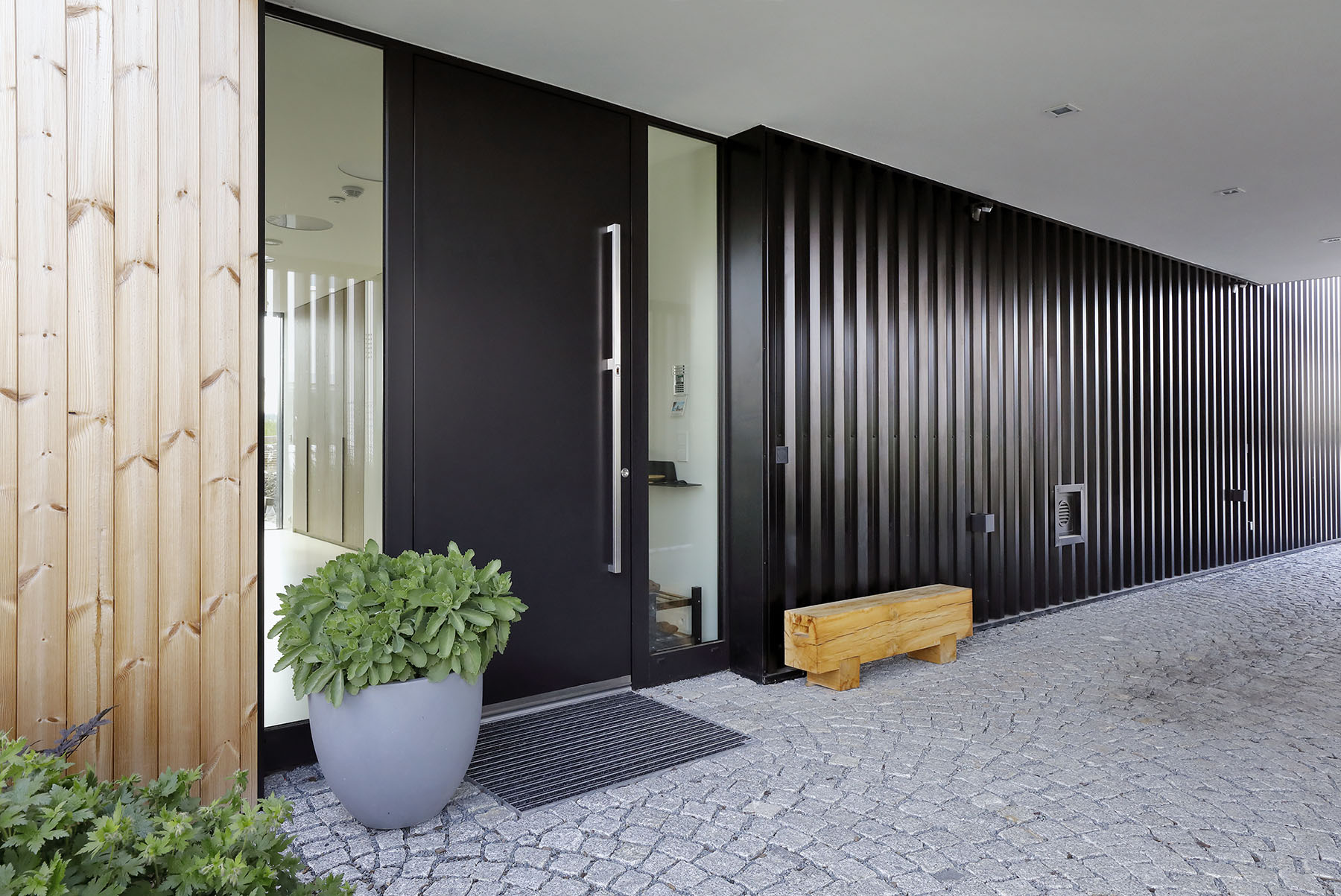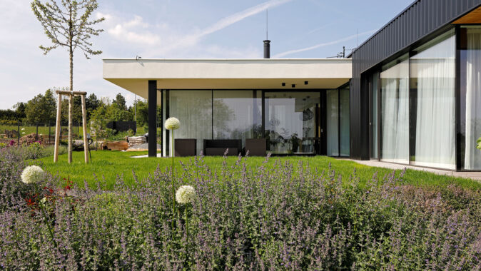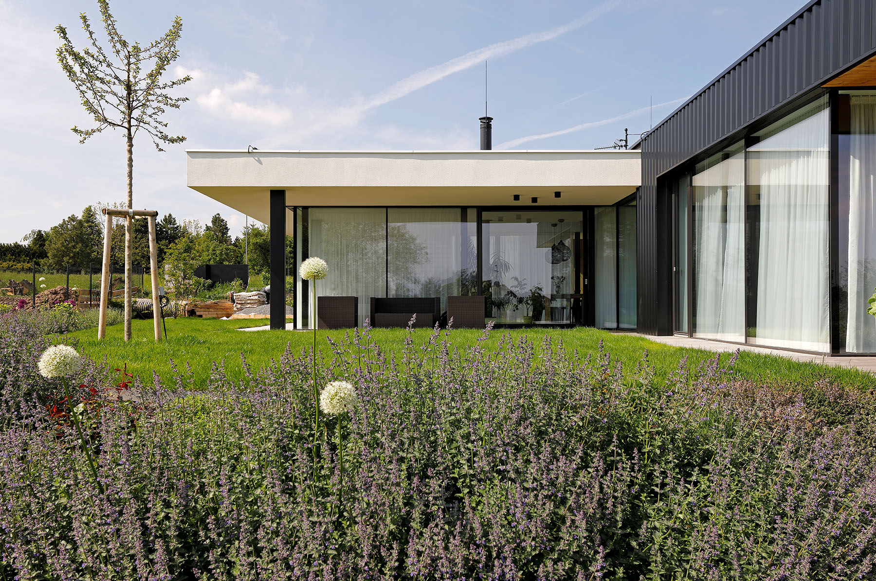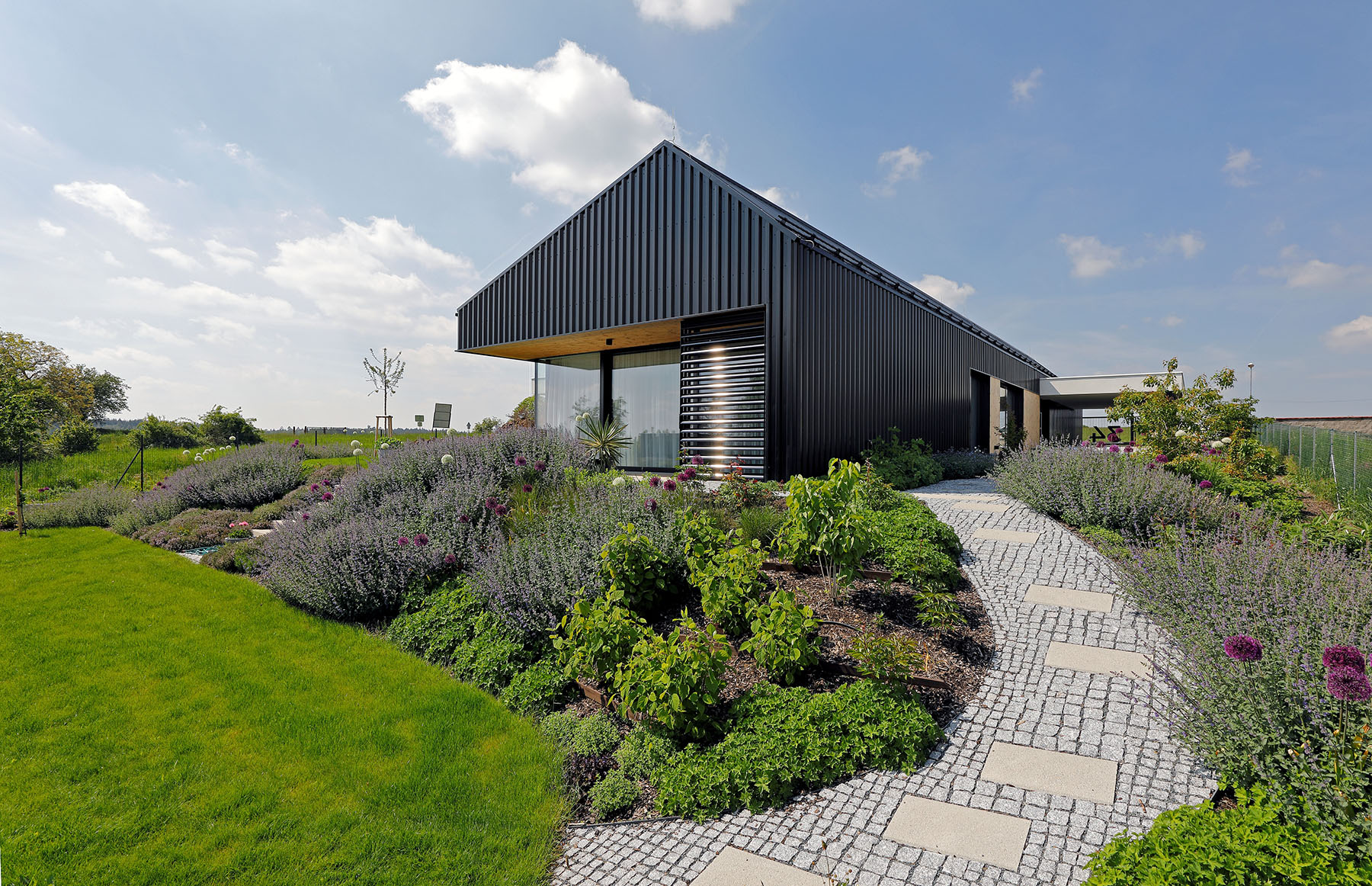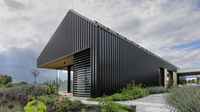 Poté, co manželský pár vychoval dvě děti, byl pro něj dosavadní dvoupodlažní rodinný dům příliš velký. Proto se manželé rozhodli pro stavbu nového domu, který by byl šitý na míru současné fázi jejich života: funkční, komfortní a vzdušný, s moderním interiérem a dost velkou zahradou, bezúdržbový a přizpůsobený potřebám dvou obyvatel s možností pohodlně v něm ubytovat občasné návštěvy. Zároveň měl splňovat jejich požadavky na estetičnost a eleganci. Jejich představy našly naplnění ve stylové černé přízemní stavbě, u níž jsou jedním z hlavních prvků celkového řešení trapézové plechy Lindab. Ty jsou použity jak na střeše, tak i na fasádě.
