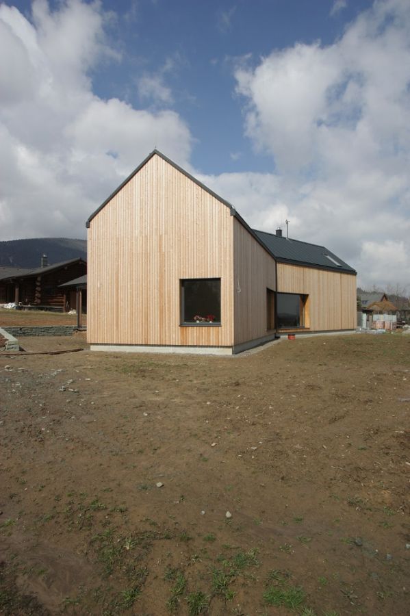 Je to možná pro mnohé netradiční řešení, které skutečně připomíná stodolu, ale přece jenom jsme v prvním desetiletí 21.století a chceme i něco jiného než klasiku. Možná, že část s bílou omítanou fasádou by celý dojem zjemnila, ale to je jen zase osobní pohled. Spíš trend staveb bez říms v horském terénu není zrovna ideální.