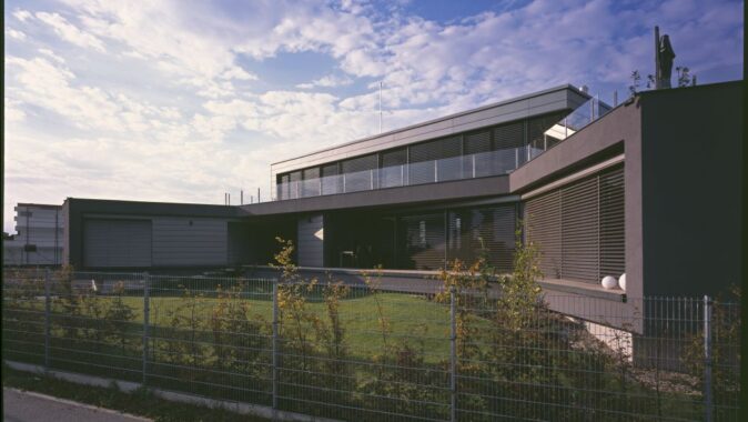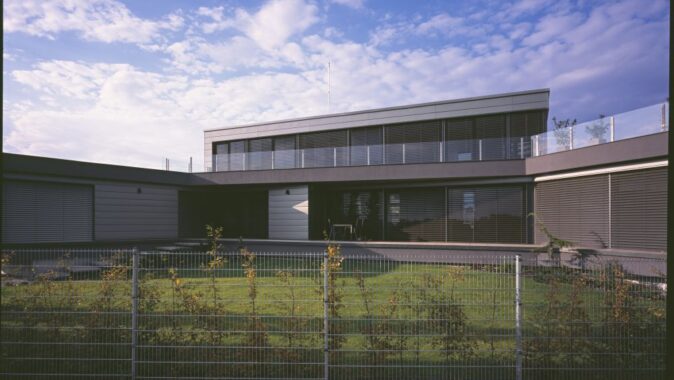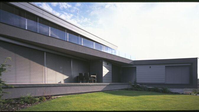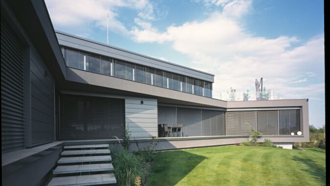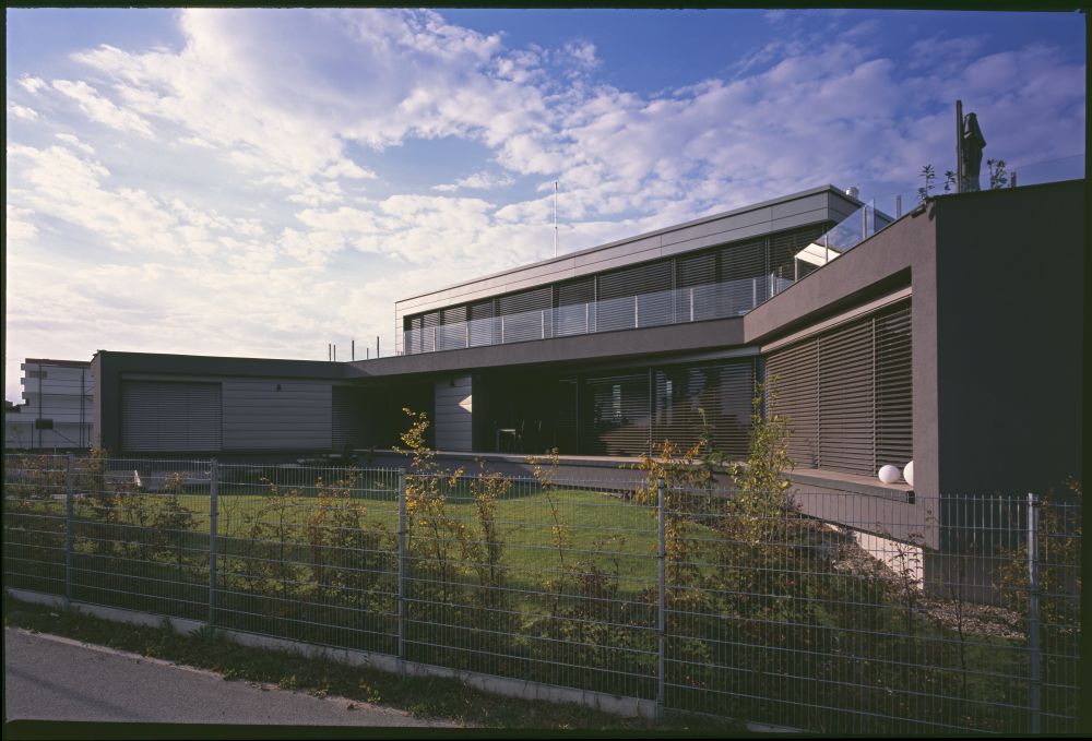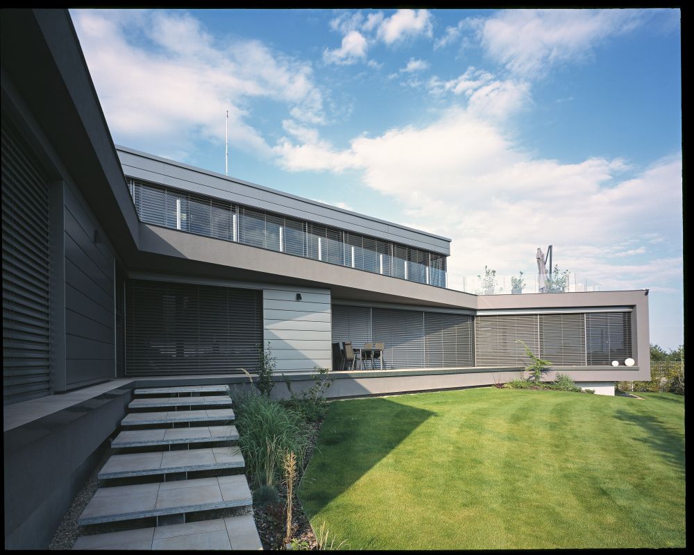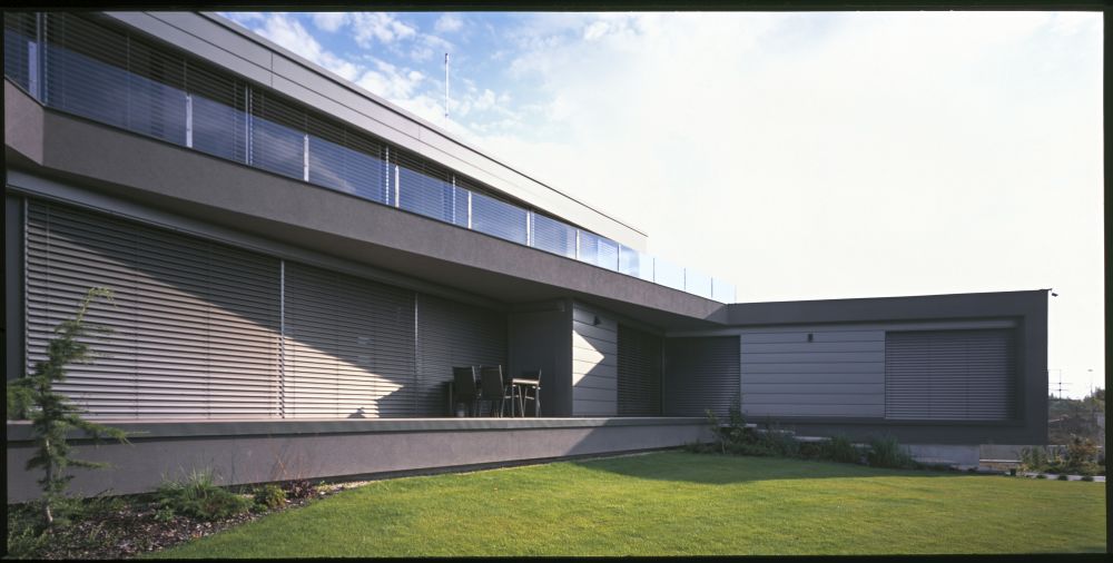 Tvar domu není pouze reakcí na lichoběžníkový tvar parcely. Rozložení hmoty objektu co nejblíže k západní, severní a východní hranici pozemku umožnilo vymezit na jižní straně pobytovou zahradu pohledově odcloněnou od okolní vilové zástavby. Půdorys domu se tak zároveň jako náruč otevírá směrem k jihu výhledy na rozsáhlé plochy rekreační zeleně podél údolí potoka Rokytky. Inspirací pro toto řešení byly i tradiční venkovské statky, kde byl epicentrem dění dvorek a jednotlivé objekty byly rozmístěny okolo při hranici pozemku.