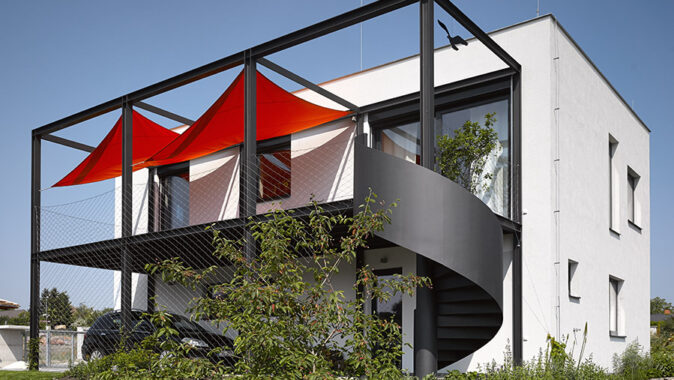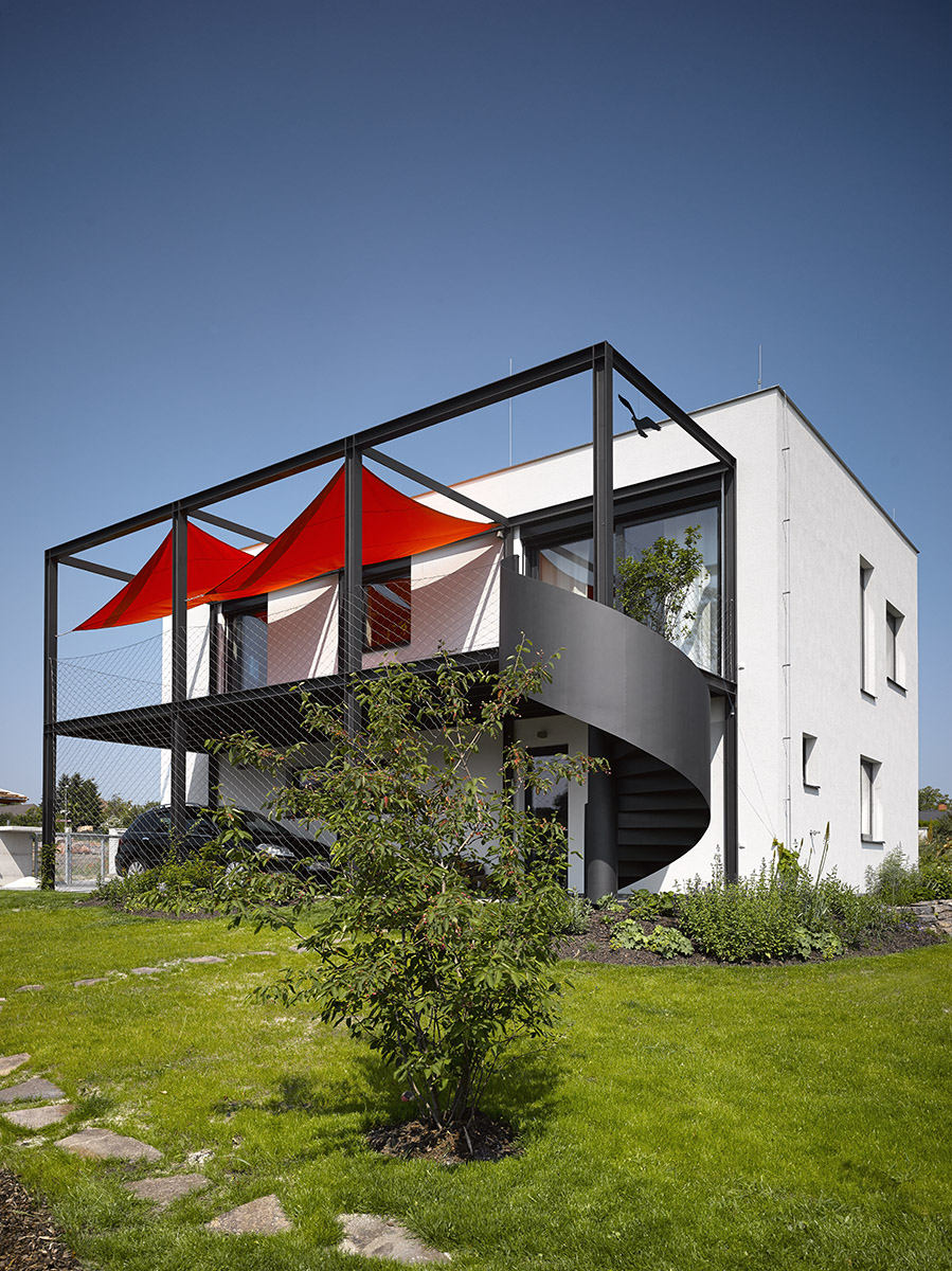 malém pozemku, a současně dosáhli jednoduché a kompaktní stavby, která je