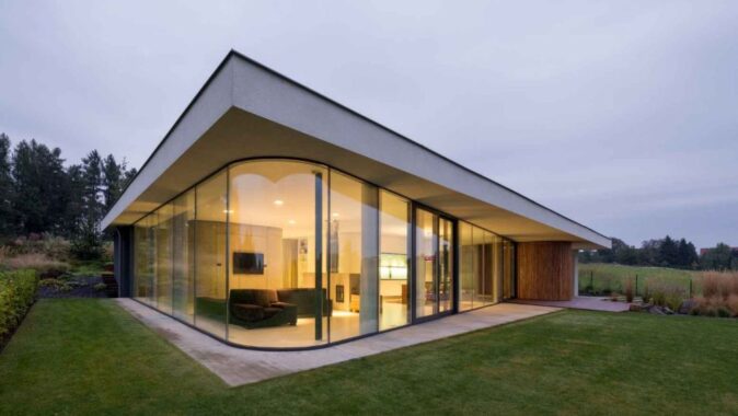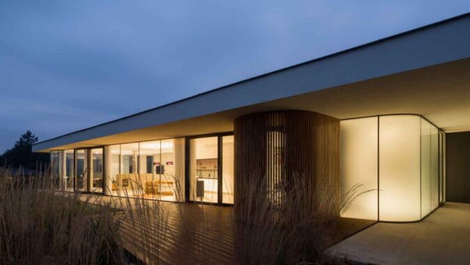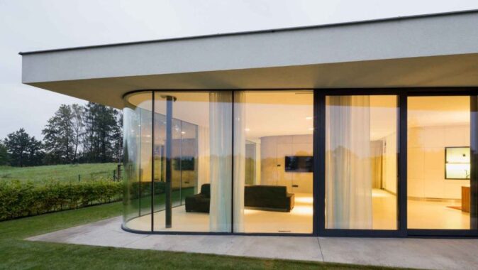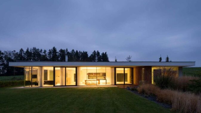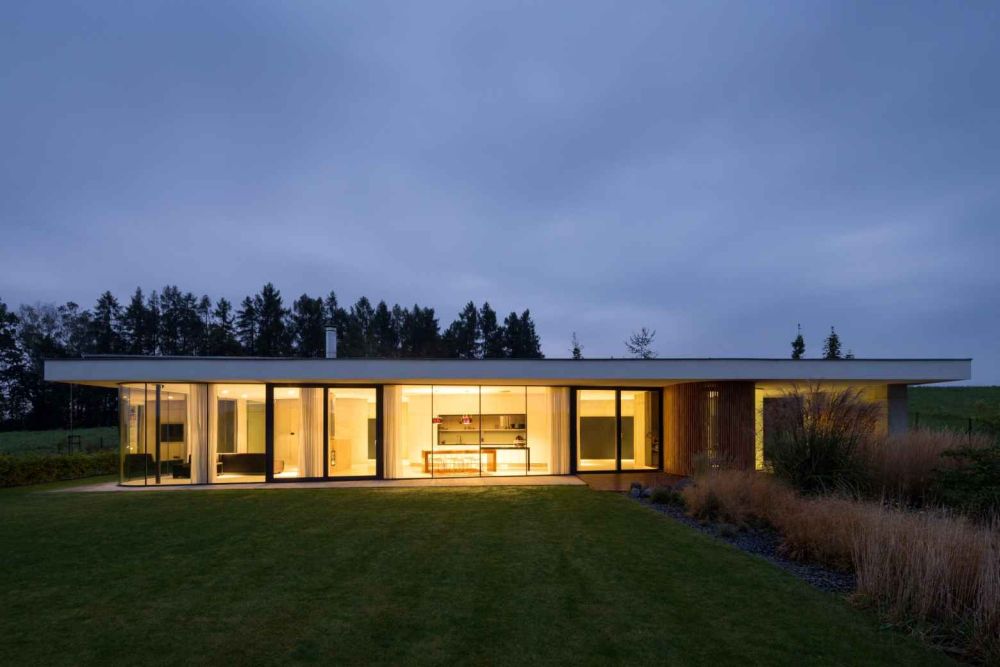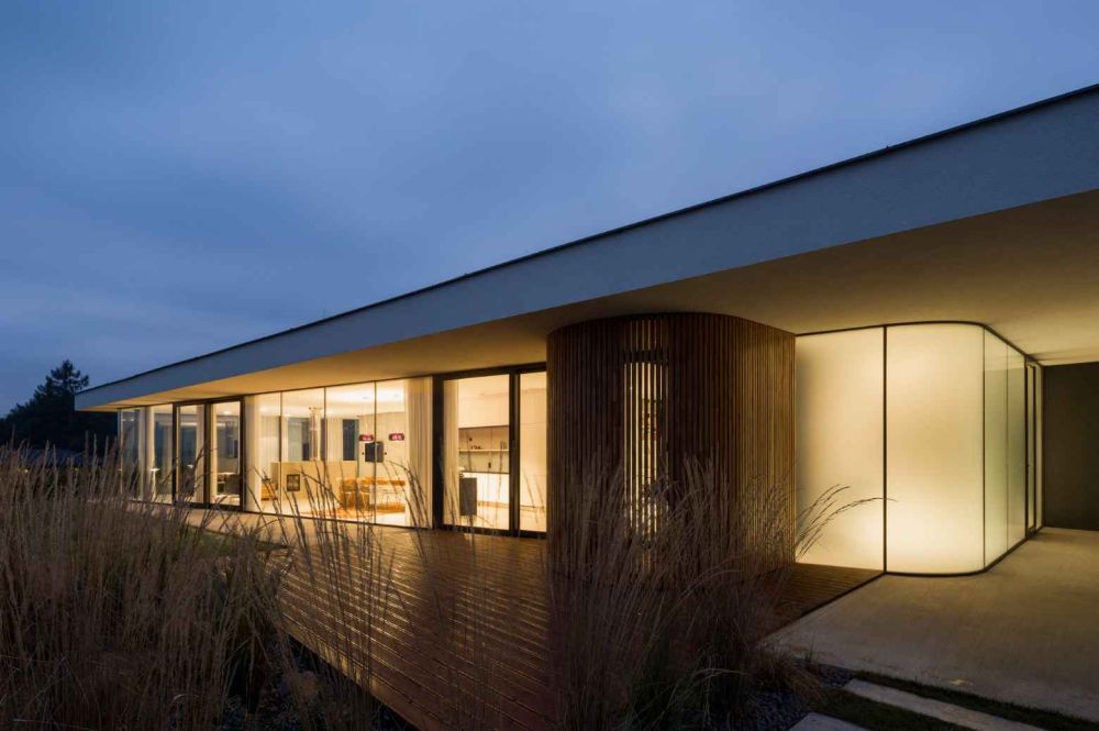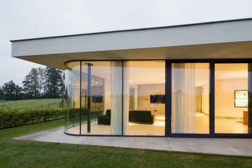 objektu, celá jižní část domu je naopak prosklená. Na terasu s budoucím