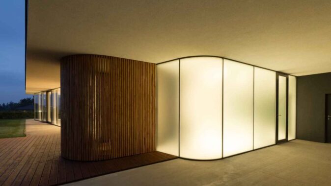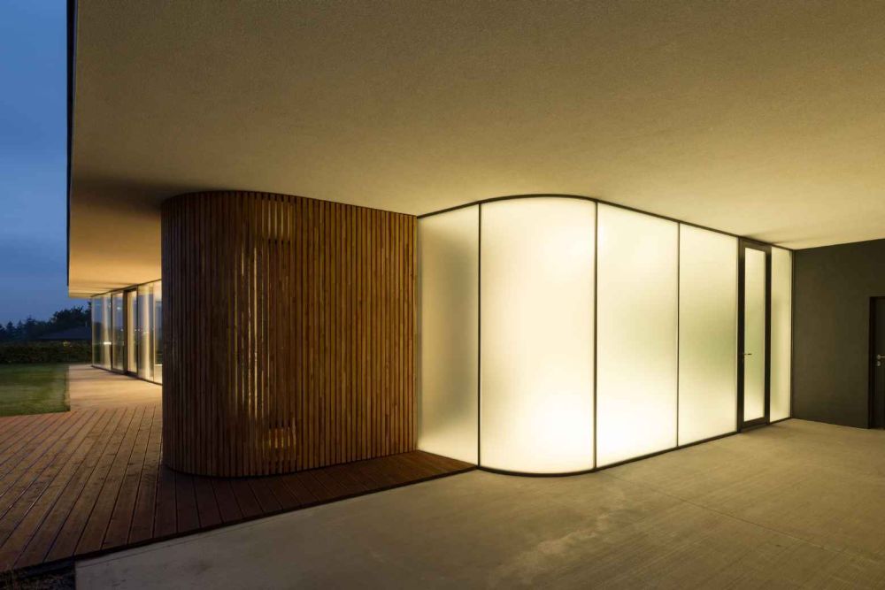 prostorem, který je vložen mezi dvě horizontální desky. V centru domu je