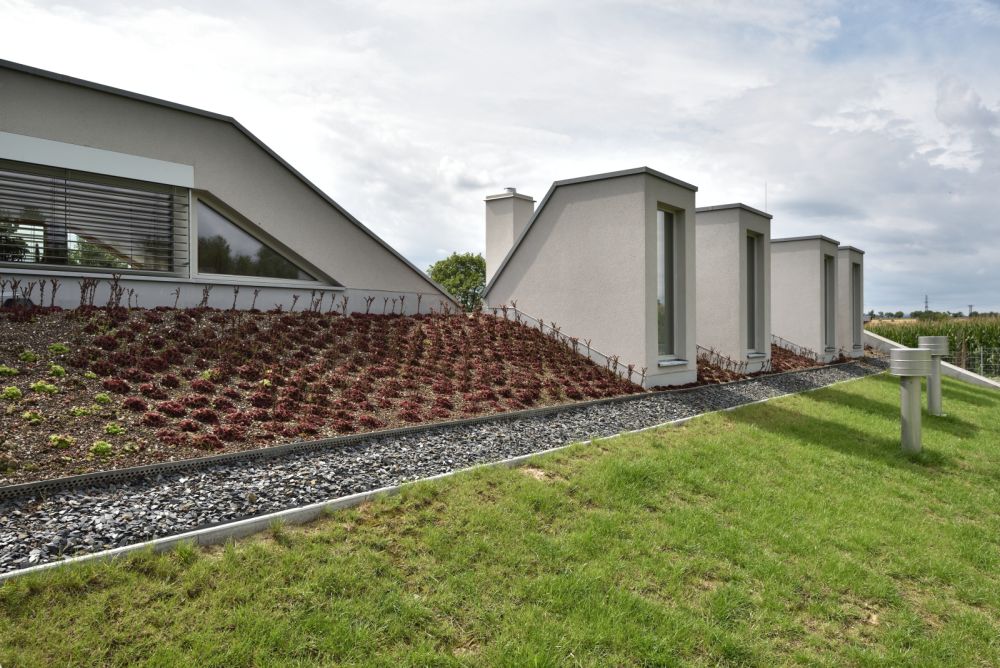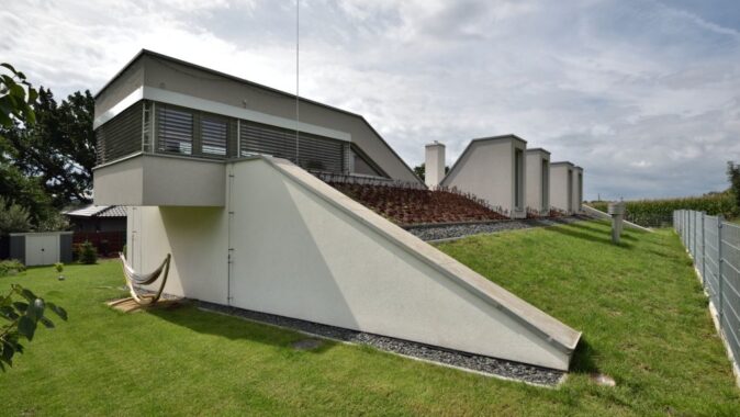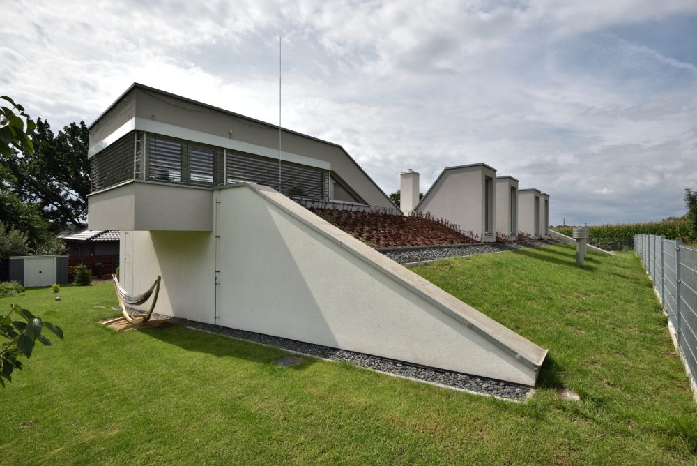 Cílem návrhu bylo vytvořit za použití minimálních výrazových prostředků bydlení s optickou a provozní vazbou na exteriér s panoramatickým výhledem a inspirativní pozicí předválečného bunkru. Rodinný dům stojí v severní části pozemku, jeho částečné zapuštění do terénu zelenou střechou z něho vytváří ideálního rezidenta v lokalitě U Pevnůstky.