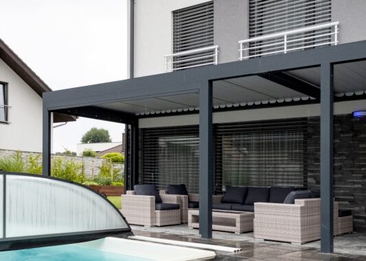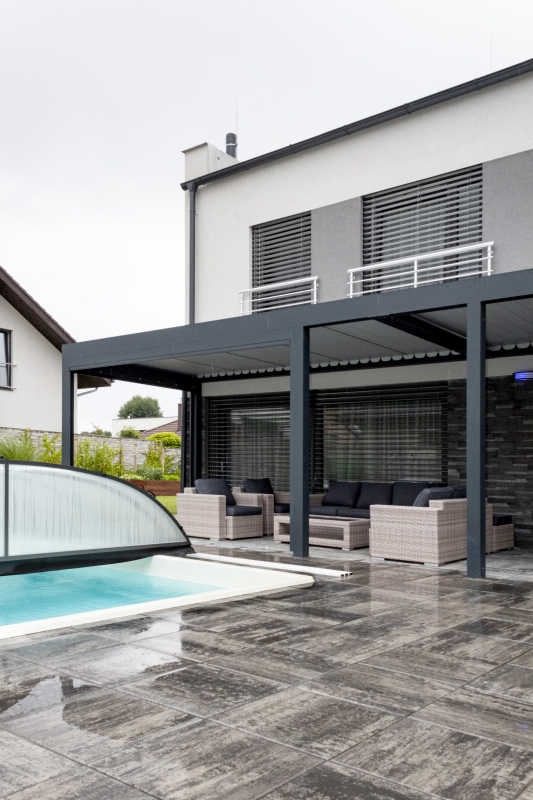 Majitelé si vybrali typový rodinný dům La Paz v nové zástavbě nedaleko Prahy. Dvoupodlažní dům s dispozicí 5+kk si majitelé upravili přidáním nebo naopak ubouráním některých příček. Dům patří manželům, kteří již mají děti odrostlé a užívají si vnoučat. Bydleli v centru Prahy, ale cítili, že potřebují změnu, a toužili po domě se zahradou. Majitel domu si také přál krytý bazén, který by mohla hojně využívat i vnoučata.