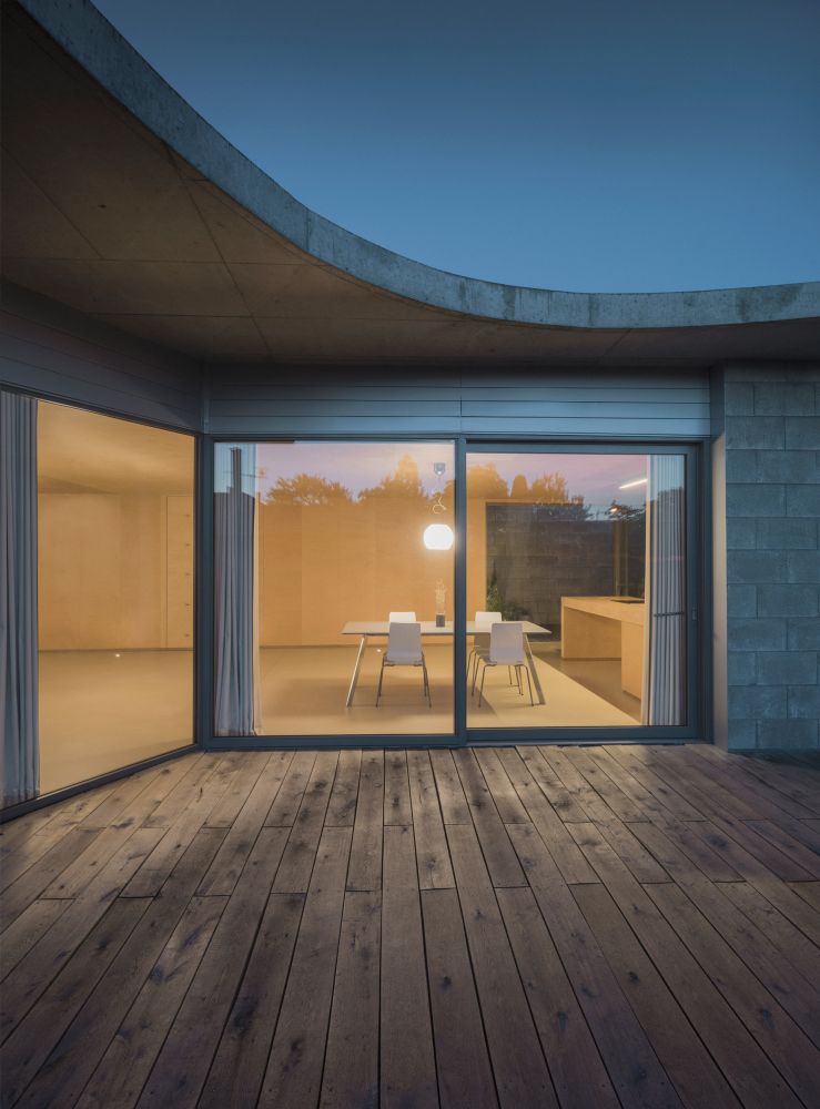 Přízemní dům je realizován ze ztraceného bednění v exteriéru pohledového, uvnitř byl obložen vrstvou překližky. Střecha je ze železobetonu s hydroizolační stěrkou na bázi cementu, podlahy jsou uvnitř polyuretanové.