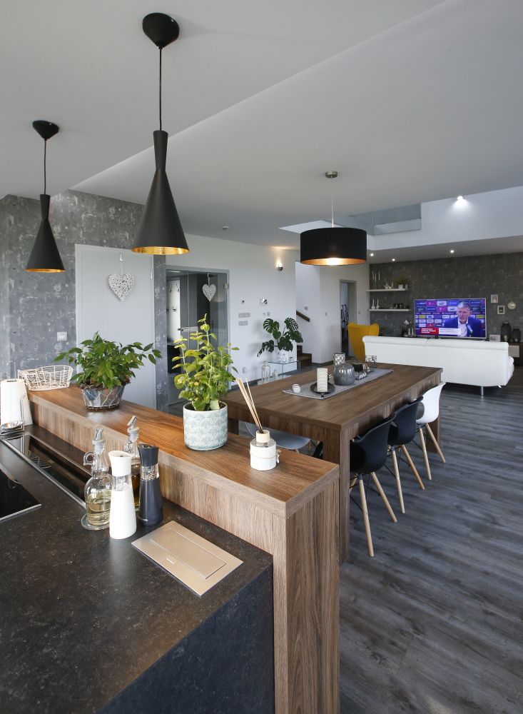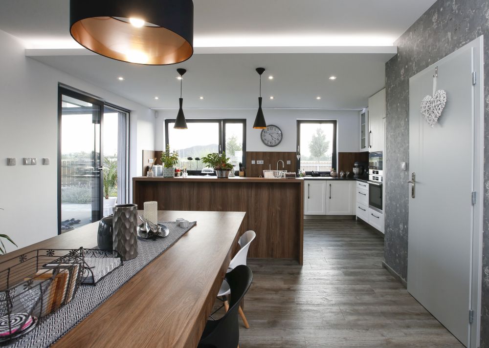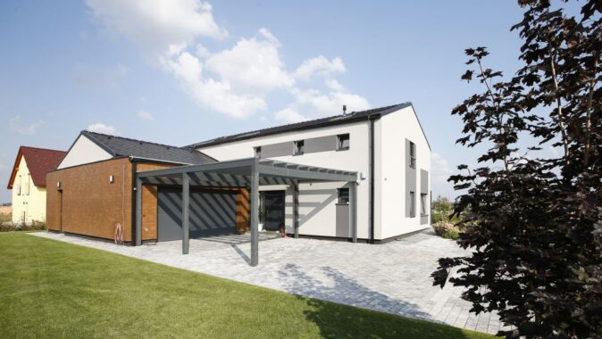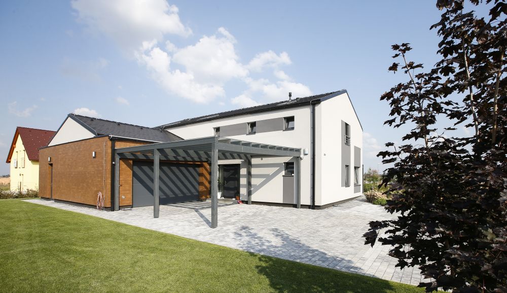 Majitelé měli možnost vidět podobný, již dokončený dům, líbil se jim. Proto jsme pro ně připravili návrh ve stejném duchu včetně interiérů. Přáli si dřevostavbu, dostatek technických prostor a garáž, která dveřmi nebude propojena s domem.