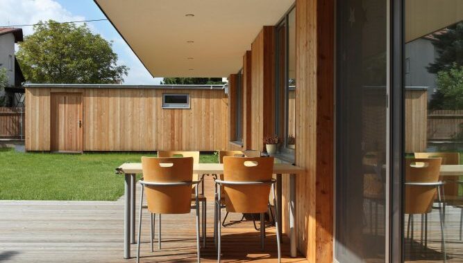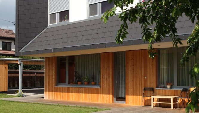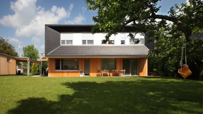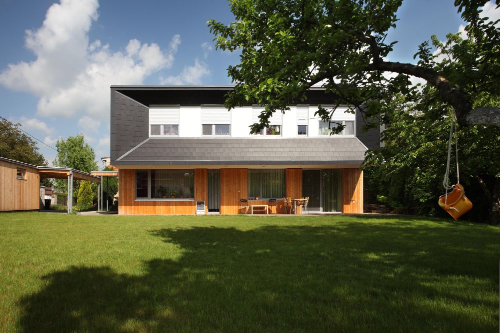 Rodinný dům pro čtyř až pětičlennou rodinu vytváří moderní prostředí pro bydlení, svou orientací a usazením v severozápadní části zahrady však respektuje charakter zástavby starší obytné čtvrti.