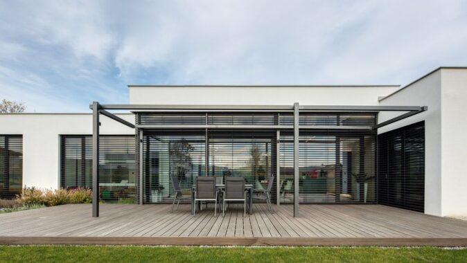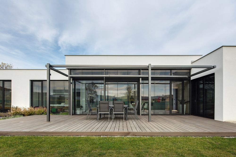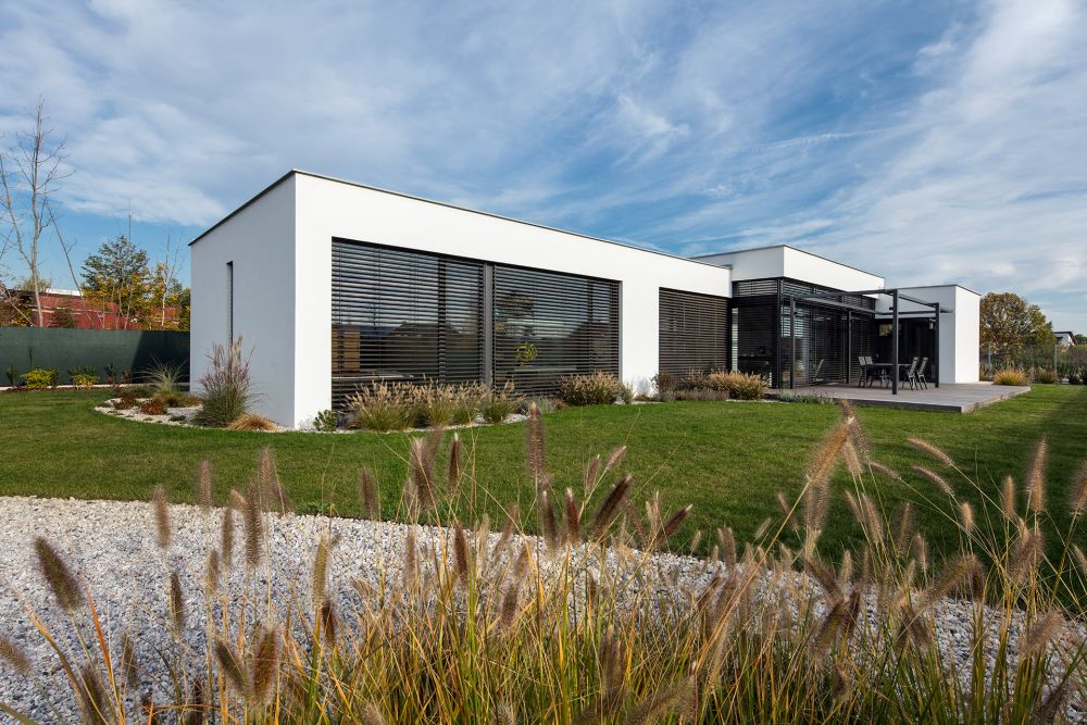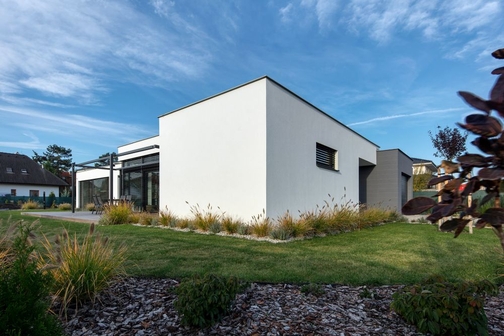 Zadáním investorů byl jednopodlažní objekt s převýšeným prostorem a velké prosklení do zahrady. Interiér jsme řešili společně.