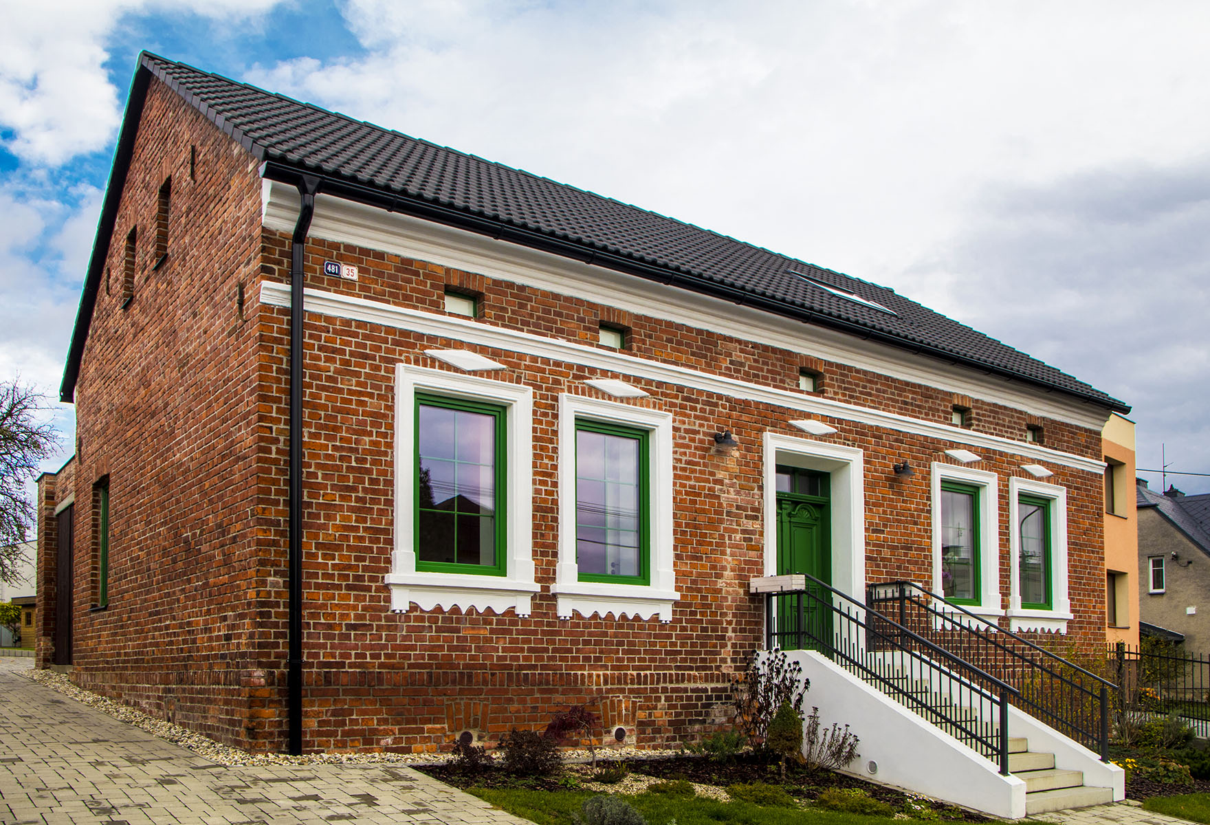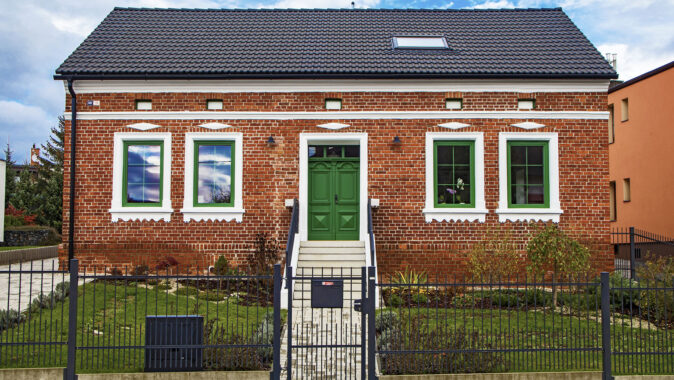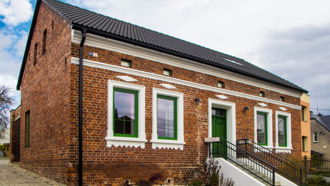 Zrekonstruovaný dům v Hlučíně se pyšní historickou fasádou z lícových cihel, která připomíná anglickou architekturu v georgiánském stylu. Režnou fasádu rozjasnila decentní štuková výzdoba a barevné řešení oken a vchodových dveří.