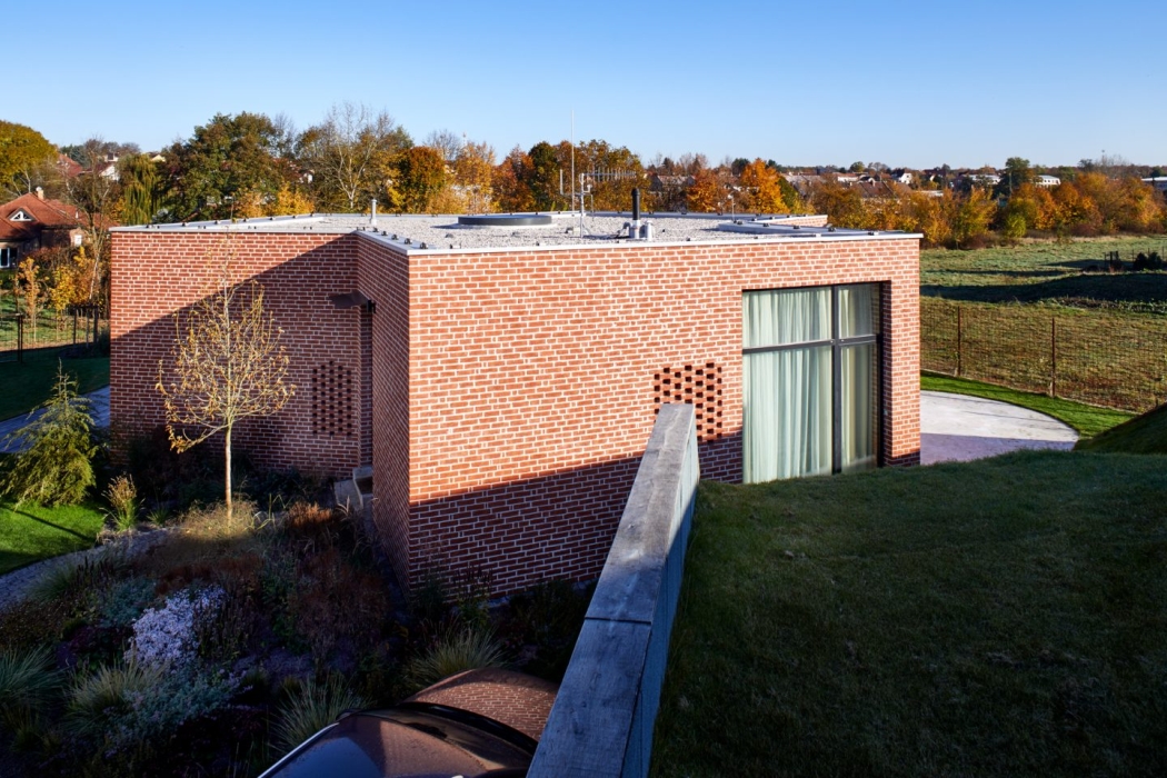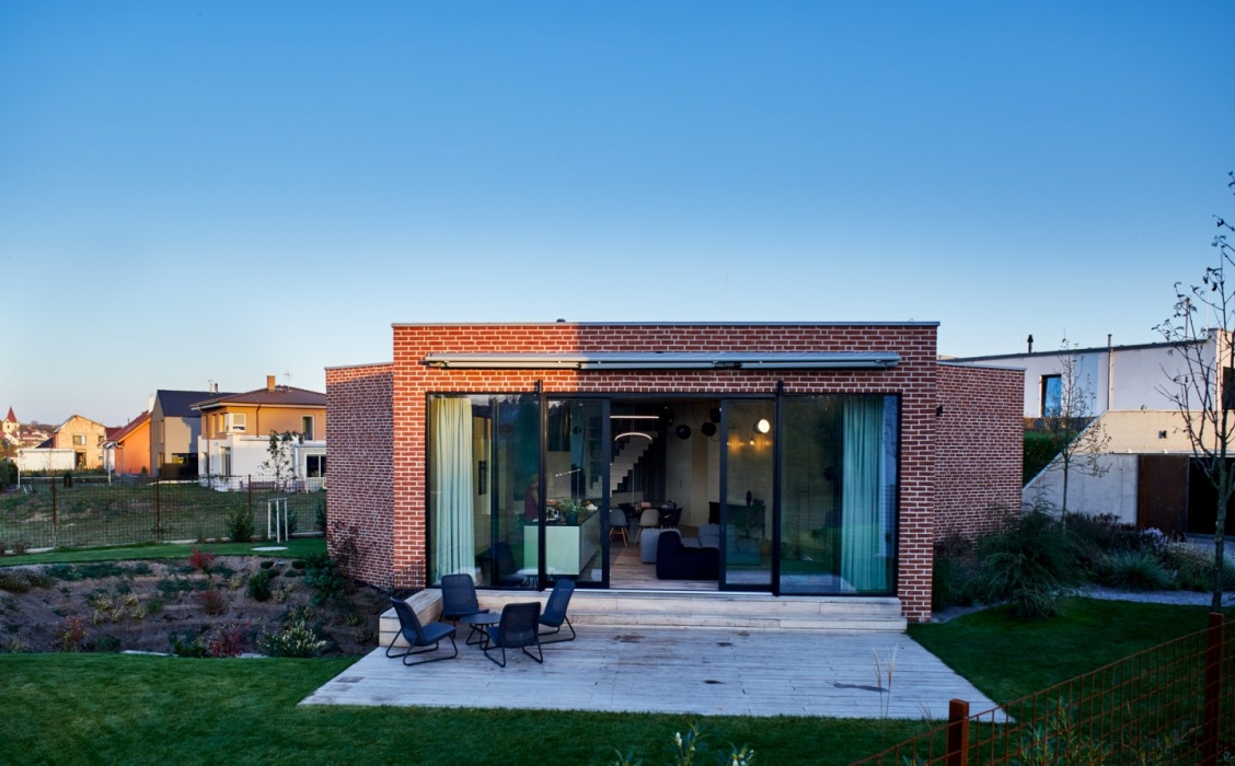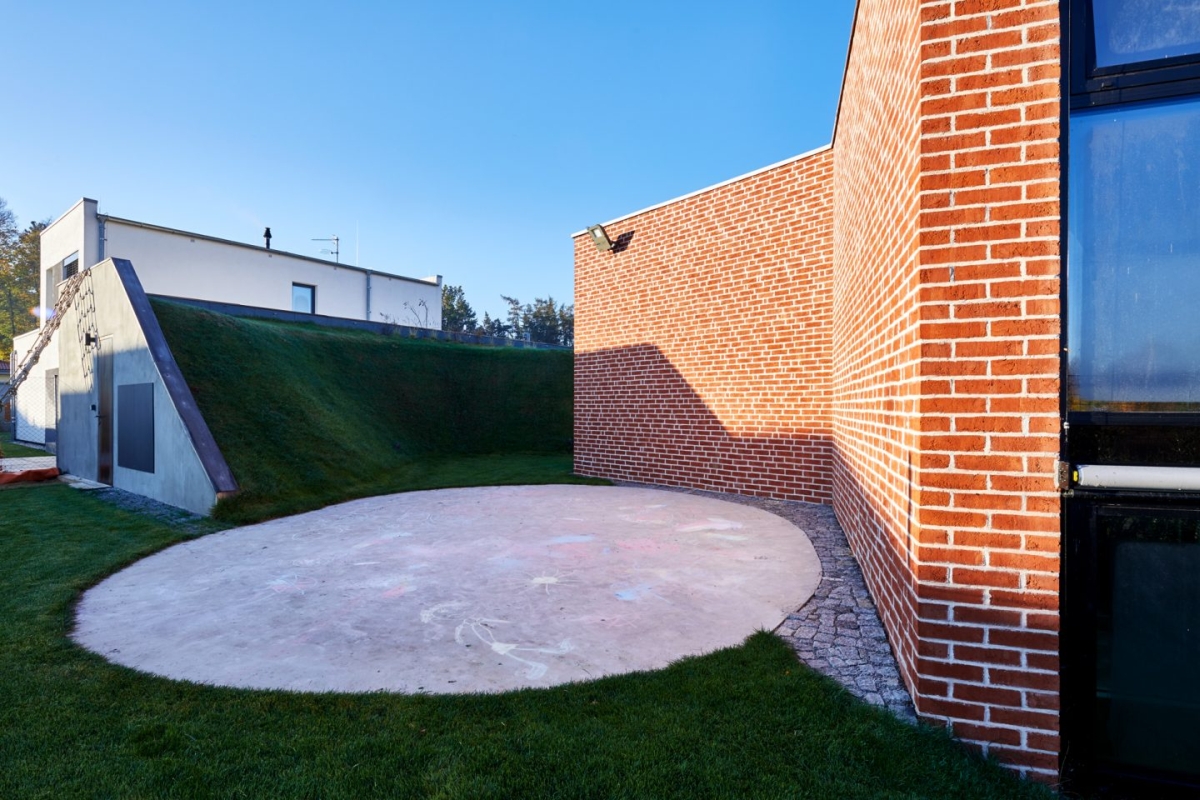 Důležitou součástí je plán zahrady. Hmota domu porcuje zahradu na autonomní zákoutí. Cestu k domu, terasu – prodloužení obytného prostoru, dětské hřiště a zelený dolík u koupelny.