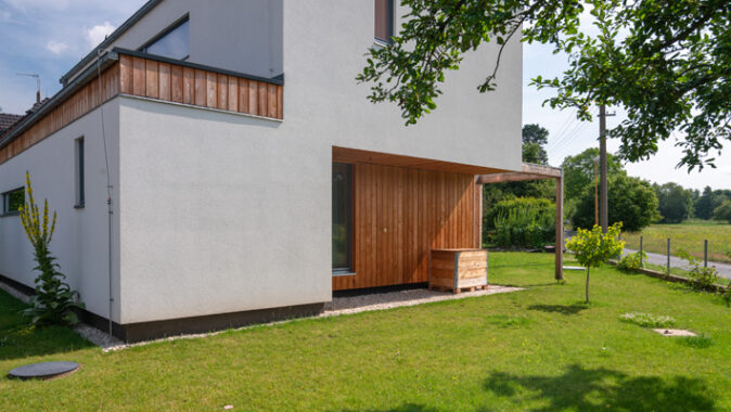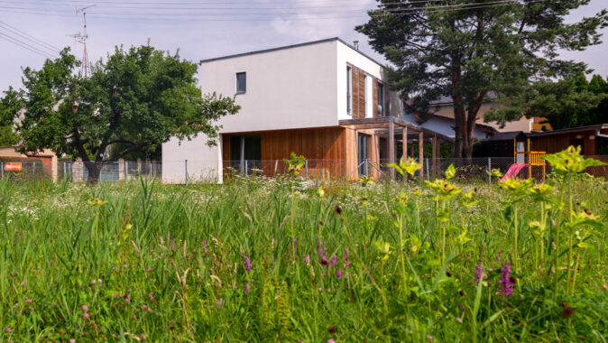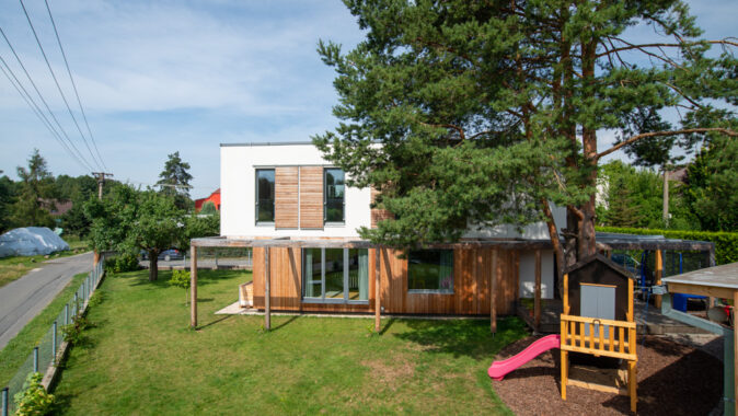je na pozemku umístěn s ohledem na stávající zástavbu a v návaznosti na přilehlou