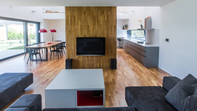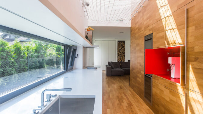 Mladá rodina si pro své bydlení vysnila rodinný dům, který upoutá na první pohled netradičním řešením, bude reprezentativní a přitom funkční. S původním projektem domu byli majitelé nespokojeni, a tak začali spolupracovat s architekty z MIO architects. Ti z dřívějšího projektu zachovali velké prosklení a otevřenou galerii, s nímž skvěle ladí tmavě šedá falcovaná střešní krytina Lindab SRP Click. Aby dům působil kompaktně, je tato krytina využita i na plášť celého domu. Na výraznosti a kontrastu mu dodává kombinace fasády na bočních zdech s bílými štíty, do nichž jsou umístěna okna s výrazným orámováním.